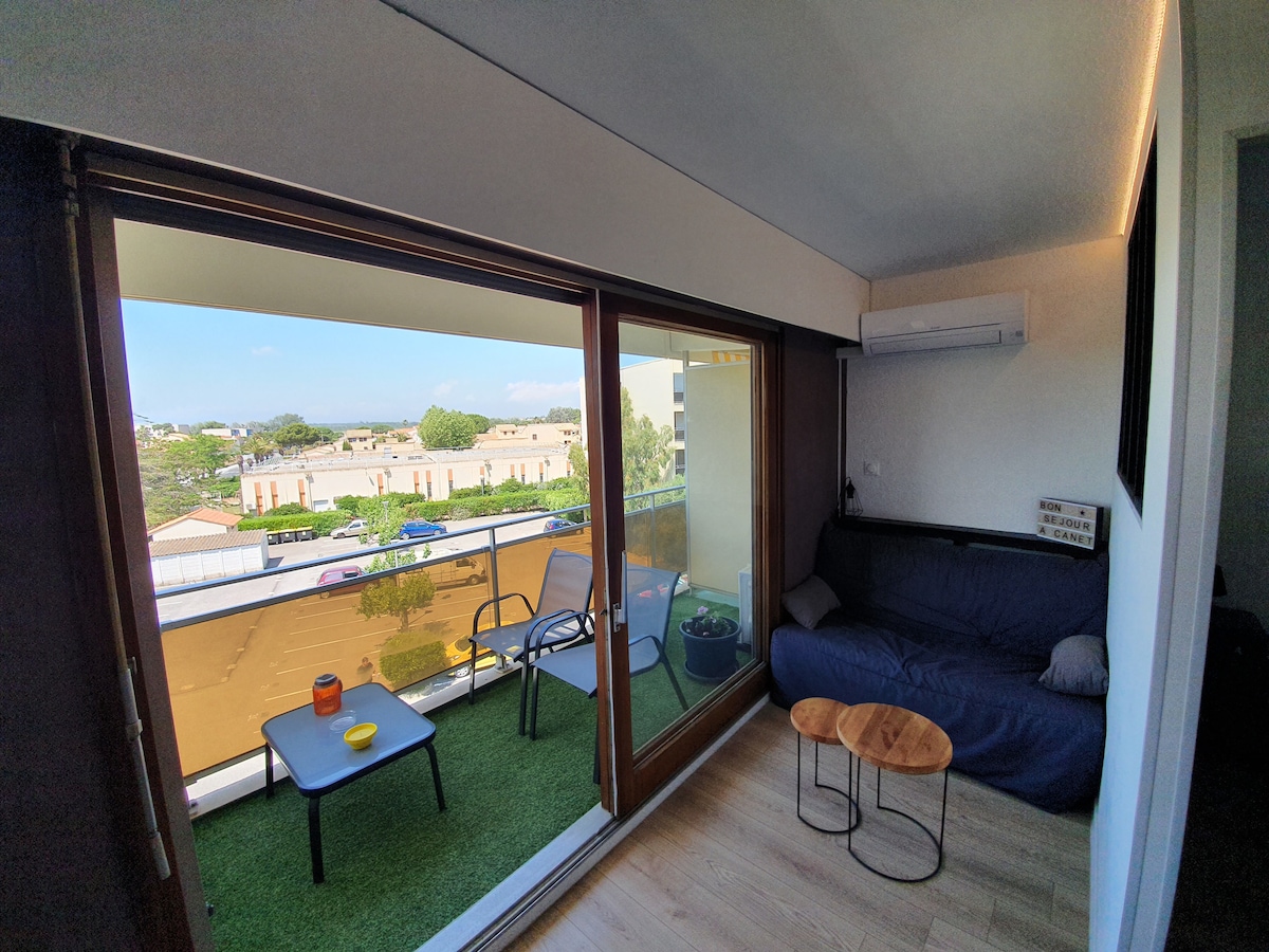 Grand studio (35m2) avec espace nuit (lit en 160X200),climatisé, au 7ème et dernier étage avec terrasse et vue sur la mer imprenable. Proche des commerces, de toutes commodités, des animations, du marché, des restaurants, du casino, du port .. Il n'y a pas de parking mais le stationnement dans les rues aux alentours est gratuit. L'appartement est traversant, orienté EST-OUEST. Salle d'eau moderne. Wc séparé. Horaires arrivées et les départs 15 H (flexibles). Linge inclus.