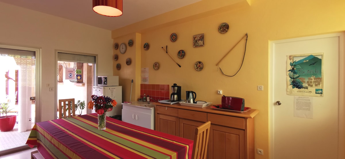 Rivesaltes, village typique de la région Occitanie. Un cadre exceptionnel proche des plages (15min) et de la montagne avec de belles stations de ski. Perpignan à seulement 10min et l'Espagne 25min. Centre du village à quelques minutes à pieds ou en voiture, tous commerces, services et transports. Grand centre commercial à 10min. Le logement est accessible par une entrée privée avec stationnement. Le studio est idéalement situé pour découvrir notre région et les activités.