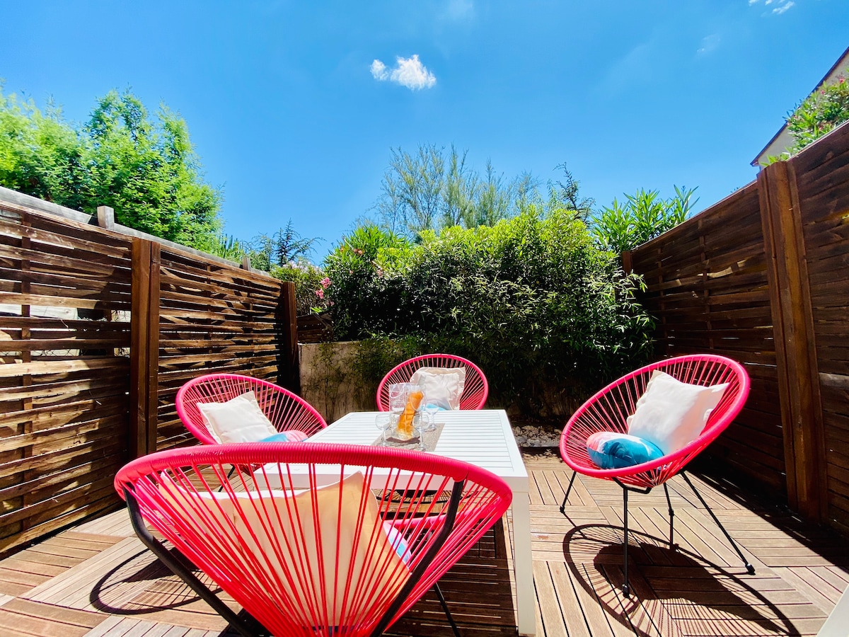 Cette charmante maison offre un emplacement de choix à 300 mètres des plages et commerces. Entièrement rénovée et décorée avec goût, elle se compose d’une maison principale et d’une dépendance, le tout climatisé (3 chambres, 2 salles de bain). Elle dispose d’une connexion internet (fibre), une cuisine équipée, smart-TV, lave -linge... Le jardin entièrement clos s'organise autour d'un espace repas avec barbecue, d'un espace « détente » avec transats, et vous pourrez vous garer dans l'allée.