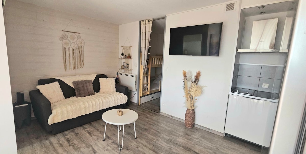 Appartement cosy et bien équipé pour 4 personnes, à seulement 300 m de la mer à 100 m du port, proche du centre-ville, des restaurants et des commerces . Profitez d’une chambre ouverte, d’un salon avec clic-clac, d’une cuisine avec four micro-ondes, d’une salle d’eau avec douche cabine et d’une salle à manger donnant sur un jardinet privé. Résidence calme avec piscine (ouverte du 30/06 au 01/09/2025), place de parking privé et local à vélos. Idéal pour des vacances détente en bord de mer !
