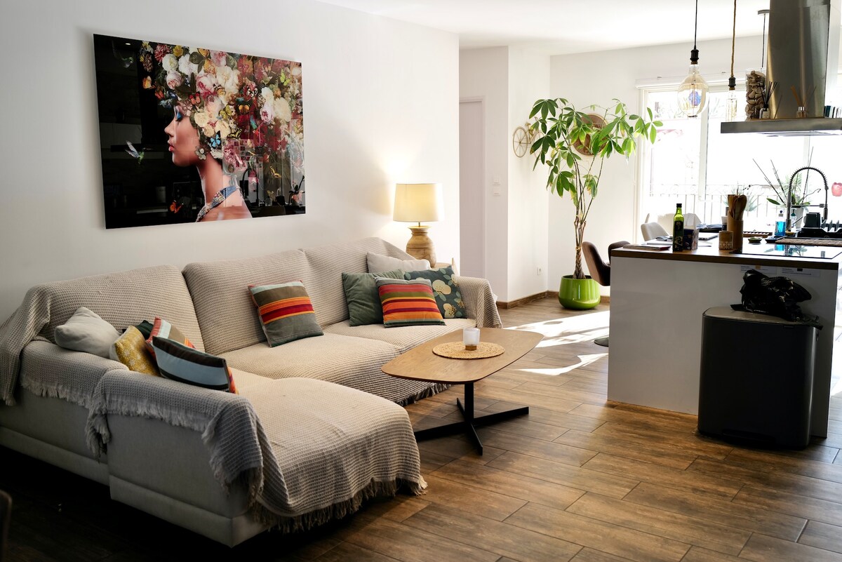 Bel appartement tout équipé de 110 m2 ,spacieux aménagé au deuxième étage d’une bâtisse catalane entièrement rénovée (2020). Literie de qualité ,climatisation, double vitrage Il est situé en plein cœur du centre historique et de la vie locale , 1 minute à pied du centre ville de ses commerces et de ses plages. Vous profiterez d'un balcon plein sud et une terrasse en toiture " rooftop " Cet appartement peut accueillir 1 à 6 voyageurs dans ses trois chambres spacieuses .