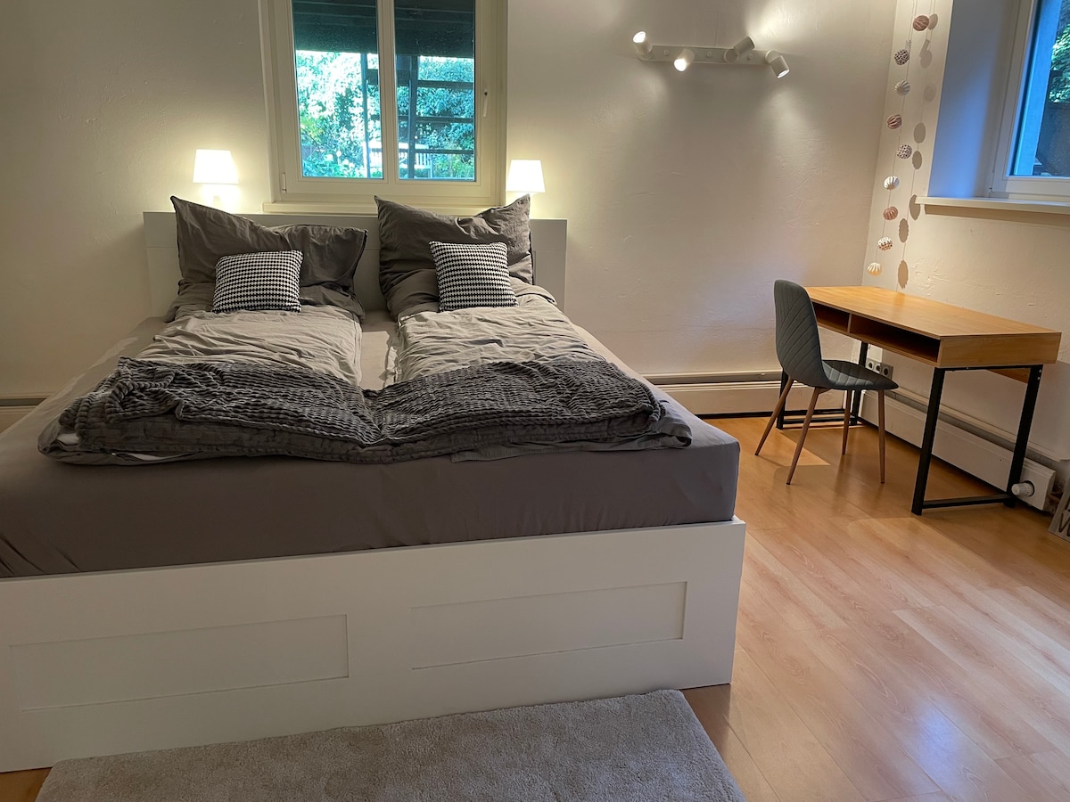 Die 1 Zimmer Souterrainwohnung befindet sich in einem Einfamilienhaus mit großem Grundstück. Die Wohnung verfügt über einen separaten Eingang. Über einen Vorflur gelangt man in das Unterkunftszimmer und das Badezimmer. Die Unterkunft liegt in einer Nebenstraße und ist eher ländlich gelegen. Es kann auf dem Grundstück geparkt werden. Im Garten stehen Tisch und Stühle zur Nutzung zur Verfügung.