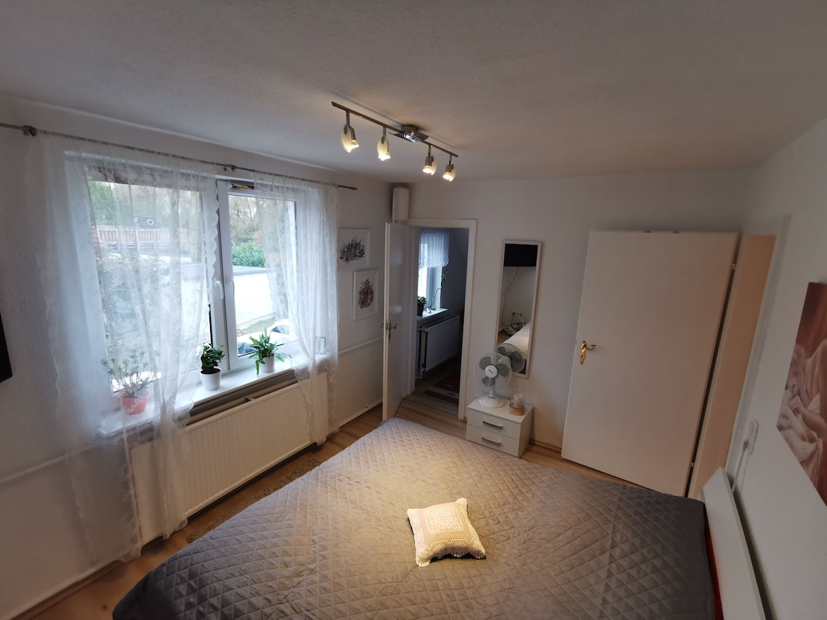 Ruhige, kleine, abgeschlossene Wohnung mit 1 Zimmer mit kl. Doppelbett, separate Küche und Bad. Entspanntes Parken direkt vor der Tür. 15 Autominuten bis Strand Warnemünde, 5 min zu Fuß zum Supermarkt und zum Bus, 10 min zu Fuß zum Stadion oder Schwimmhalle. Unterkunft nicht für rein touristische Zwecke wegen der dann daraus resultierenden Pflicht zur Kurabgabe für die Hansestadt Rostock