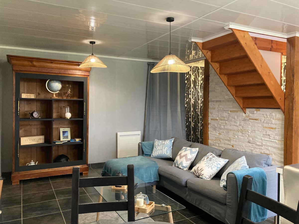 Maison VUE MER : séjour avec cuisine US équipée (four, 2 feux gaz, lave-vaisselle, réfrigérateur freezer, micro-ondes, cafetière, grille pain, bouilloire) (aspirateur, balais, seau et lavette, table à repasser fer, étendoir à linge) canapé convertible salle d'eau avec WC, lave-linge, chambre vue mer , lit 160x200cm grand terrasse, parking privatif- sous sol Location semaine été Si vous souhaitez en découvrir plus sur notre chalet, voilà notre page : @chalet_le_laurentais