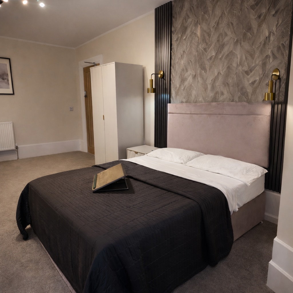 A stylish and fully serviced 4-bedroom house, each with its own private en-suite bathroom perfect for contractors, professionals, relocations, and theatre casts. Enjoy comfort, space, and privacy just minutes from Sheffield City Centre, the Crucible Theatre, and City Hall. The Space Bedrooms Four spacious double bedrooms, each with a private en-suite bathroom Hotel-quality bedding and plush towels Blackout blinds Programmable wall heaters for year-round comfort Ample storage and dedicated workspace in each room Bathrooms En-suite bathrooms in every bedroom Electric showers and modern marble finishes Kitchen & Lounge Open-plan kitchen and living area Smart TV and Sonos sound system Fast fibre WiFi Fully equipped kitchen with two ovens, two sinks, air fryer, and all essentials for longer stays Amenities Pet-friendly Free parking for vans and cars Keyless entry & secure access Housekeeping service available Modern heating and comfort throughout Ideal for long stays, group bookings, and work trips Local Highlights Sheffield Train Station approx 10 15 minutes walk Sheffield City Centre around 12 minutes walk Crucible Theatre & City Hall about 15 minutes walk Close to London Road and Abbeydale Road for restaurants, caf s, and shops Minutes from New Era Square, a modern food and cultural hub Easy access to major commuting routes around Sheffield House Rules Pets welcome Smoking permitted outdoors Check-in from 3pm Check-out by 10am