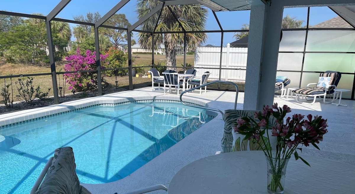 Family friendly, fully-renovated PRIVATE 4br/2 bath pool home near Boca Grande & 2 other beaches. 5 golf courses within community. Screened lanai with HUGE 16x25 pool overlooking canal teaming w/ FL wildlife & amazing sunsets. Nature trails nearby for biking, running, walking, & bird watching. Designed for multi-generational use with the master bedroom separate from the 3 guest bedrooms. Fully furnished--just bring your clothes!! Amazing reviews!