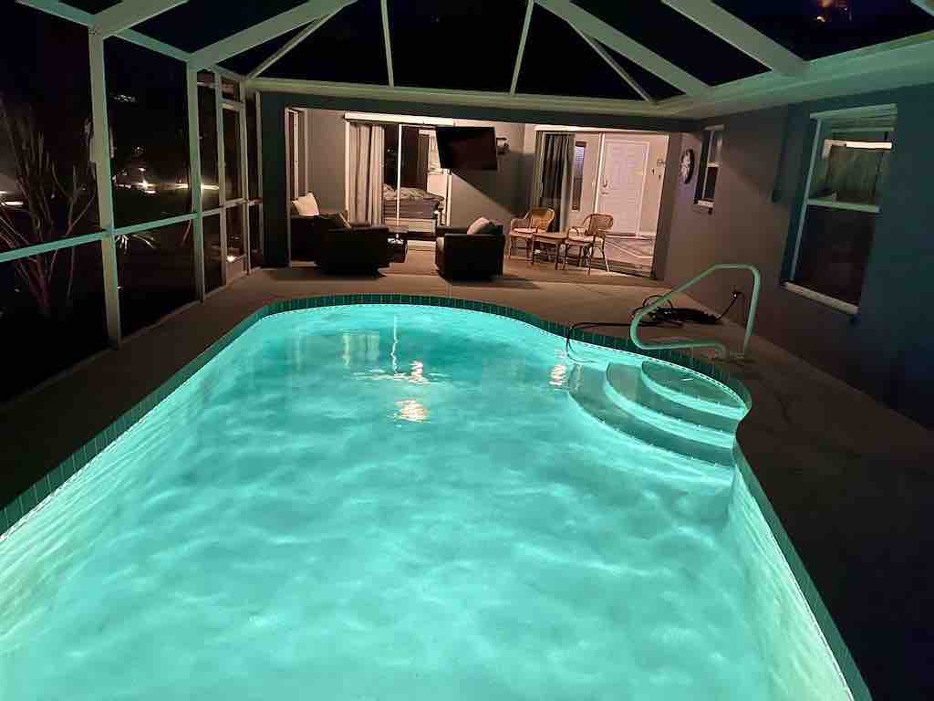 Escape to this stunning 3-bedroom, 2.5-bathroom home in a tranquil neighborhood. With an open floor plan, cozy fireplaces screened lanai with pool and hot tub, and an outdoor shower and BBQ kitchen area, it's the perfect retreat. We offer complimentary pool heating to 78°F and jacuzzi heating to 90°F so you can enjoy year-round comfort. If you'd like warmer settings, we can accommodate for an additional charge of $22