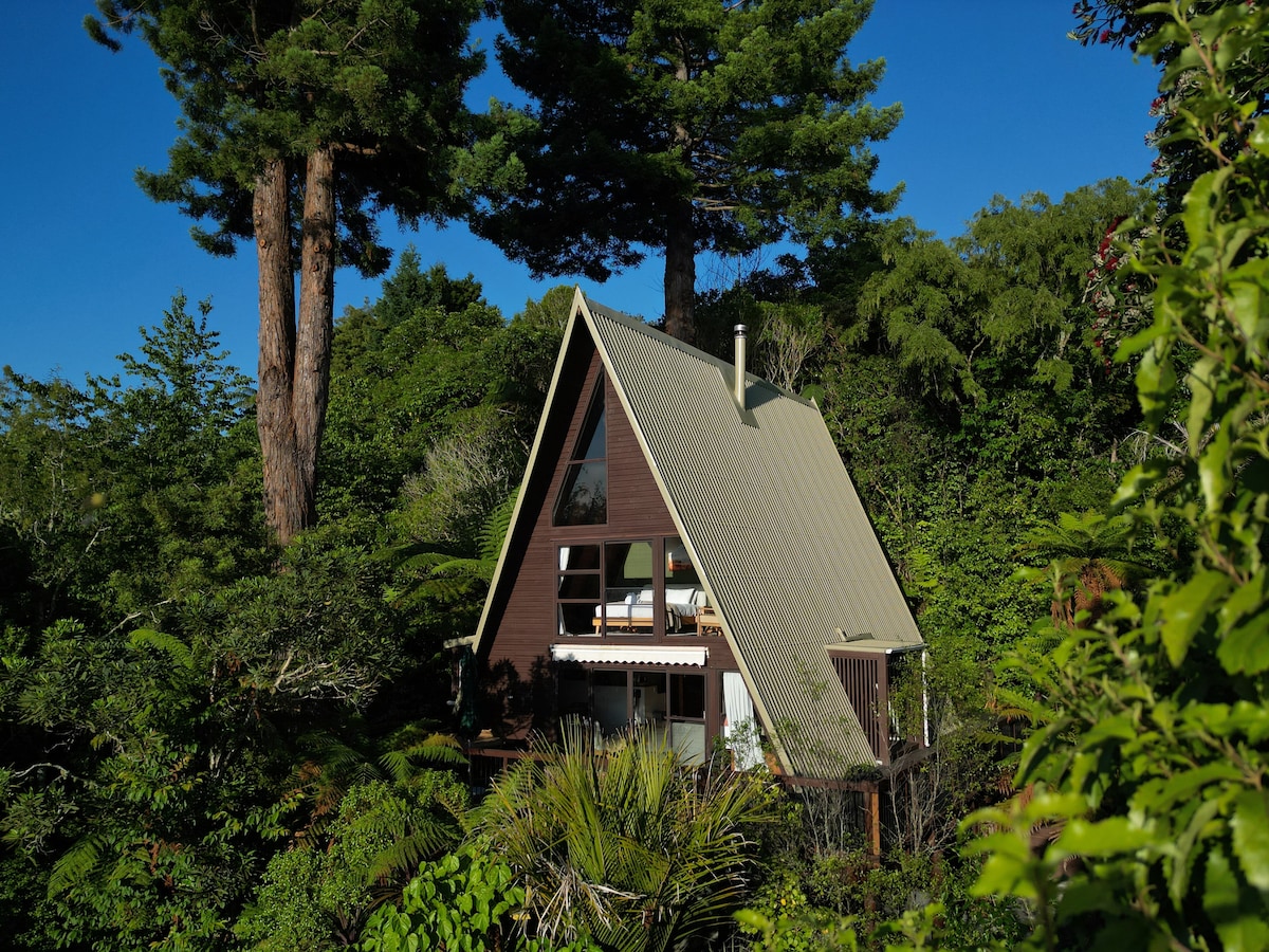 Romantic & secluded this self-contained cottage is nestled amongst native bush. Metres from the water's edge, with jetty & ramp, free use of kayaks, Stand up paddleboards. 25 minutes from Rotorua, just 15 minutes from the airport. 5 minutes to the nearest cafe. Enjoy bushwalks or world-class mountain biking in the Redwood Forest. kayaking on the lake or even take in a rafting trip on the famous Kaituna river. A 2017 Bach of the Year -Gold medalist for the "Charm" category.