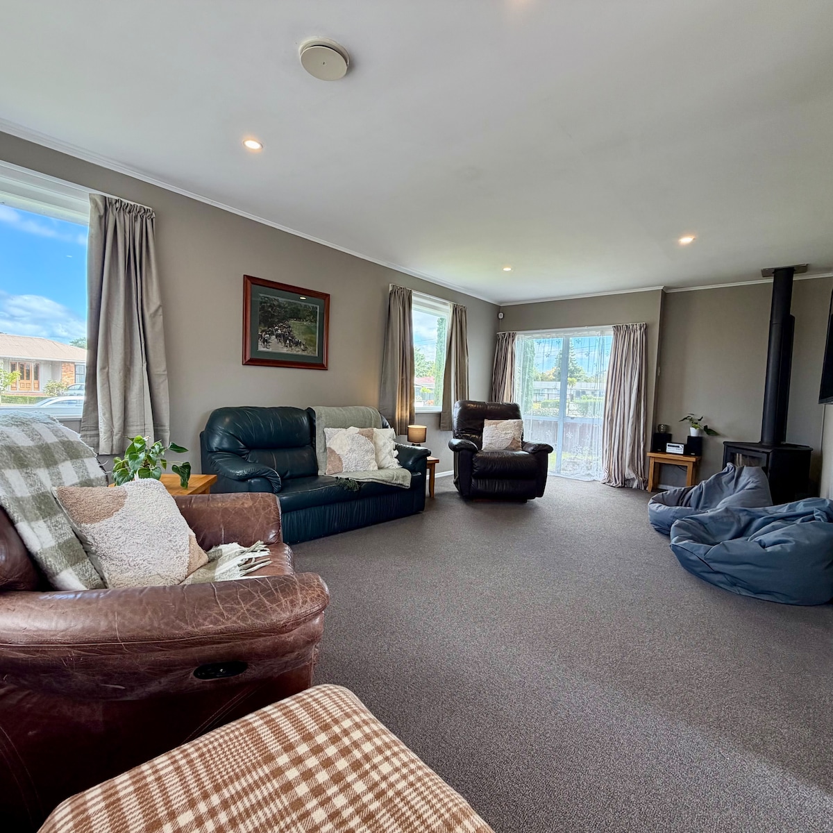 Time on Tilsley is a great base to explore the forest, hot pools & sightseeing spots of Rotorua from. Perfect for 4; can sleep 6. Luxe linens on two queen beds plus an inner sprung sofa bed makes a comfortable bed for 2 additional guests; well stocked kitchen with fridge basics; sliding doors open onto the patio for morning Nespresso; evenings around the fire pit. Bedding and towels provided. Great wifi throughout. Lock your bikes away out of sight in the laundry area. Our place = your home.