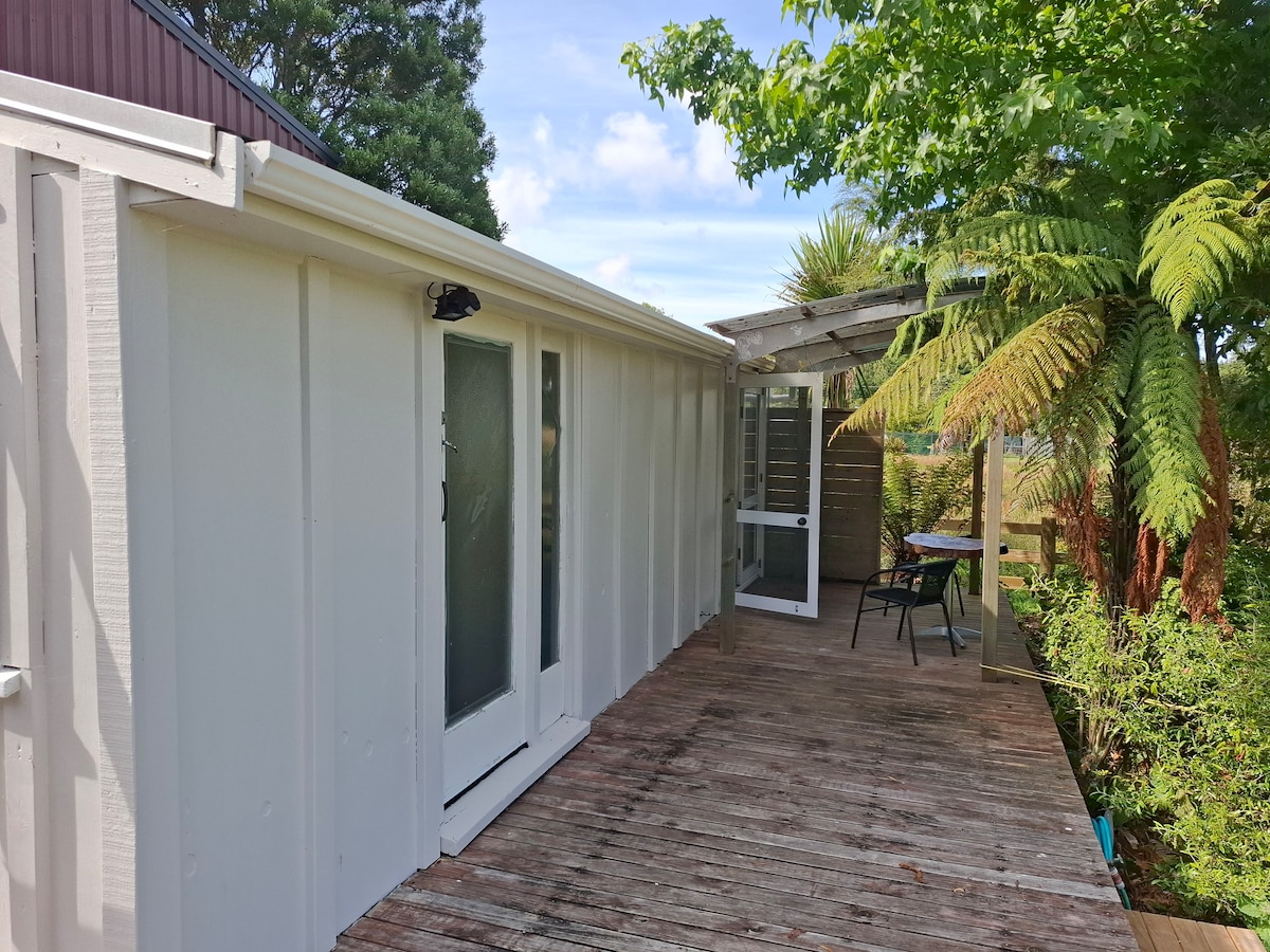 A luxury "Bali type retreat" nestled directly across road from the ledgendary Redwood Forest with its hectares of biking/walking trails and glowworms. Bubbling mud pools and steaming geysers are within biking distance while local cafes are within walking distance. The master bedroom opens onto its own private outdoor fernery with bali style shower. The second room has its own kitchenette, small terrace and very comfortable couch/bed. All double glazed. Bike store and wash area on-site