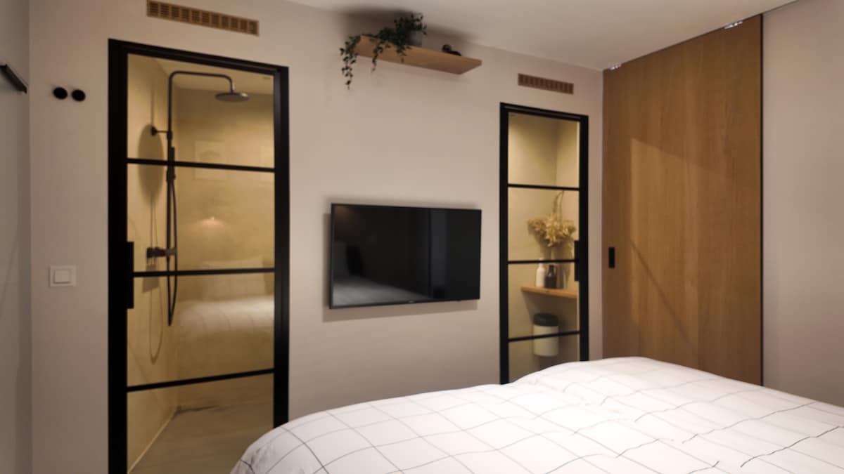 The studio is conveniently located on the ground floor. It's a private space equipped with all comforts. Comfortable bed, kitchen where you can prepare a simple meal, table and chairs, Nespresso coffee machine & water cooker. The comfortable bathroom has a showercabinet, sink and toilet. Bathtowels, shampoo, conditioner, hairdryer, iron are included.