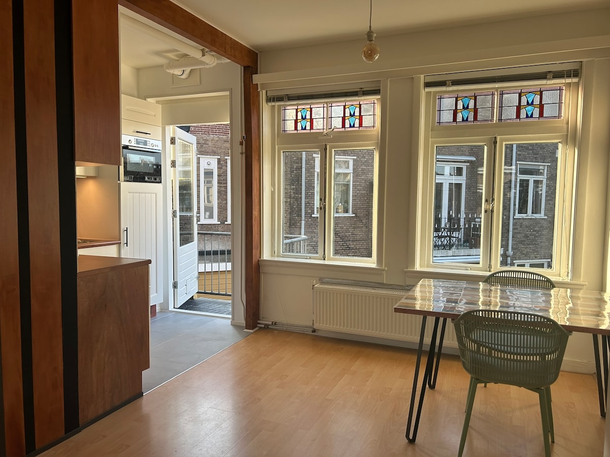 A beautifully renovated apartment situated in Kralingen, one of the most attractive old quarters of Rotterdam. The street is quiet and peaceful and lies near the 'Kralingse Plas' Lake. The apartment is located on the second and third floors and has two terraces. ps Free-Wifi included🥰