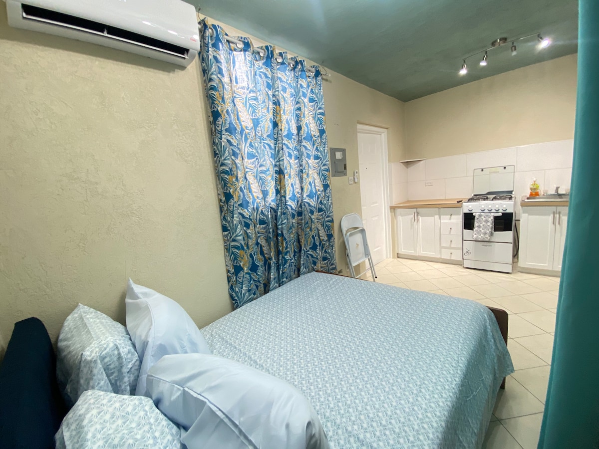 Carmen's cosy Studio is centrally located in the beautiful Parish of Saint Michael. The studio is equipped with a walk-in shower, a queen-sized bed, a desk, AC, a 43" flat-screen TV, and free Wi-Fi. The studio features a mini fridge, kettle, a portable one-burner stove and microwave for your convenience. You'll love the location, which is close to all the amenities, including the US Embassy Banks, cafes, restaurants, supermarkets, and beaches.