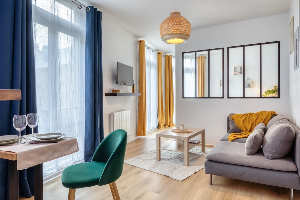 Avec ses baies vitrées et sa terrasse, ce gite offre une vue panoramique de choix sur Rouen. Ce lieu tendance dispose d'une grande pièce à vivre lumineuse avec une cuisine ouverte sur le séjour, un espace de télétravail, 2 chambres et 1 salle de bains. De plus, vous apprécierez le confort, le calme et la climatisation. Stationnement gratuit dans la rue. Possibilité de stationner vélos, scooters ou motos (garage). A 20 mn à pied de la gare SNCF et du centre ville. Station de bus à proximité
