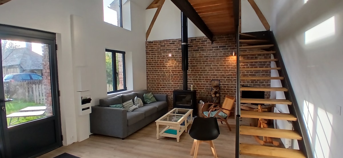 Charmant four à pain ancien en colombages, situé en bord de ruisseau il se compose de : - Salon avec un poêle à bois, - Cuisine, - A l’étage : -salle de douche/WC accessible par une échelle de meunier (voir photos), -chambre avec un lit 160x200 avec vue sur le ruisseau, accessible par une échelle de meunier (voir photos), Chambre et salle de bain ne communiquent pas. Salon de jardin, BBQ, parking privé, bois de chauffage inclus Note autre gite, la Maison de pierres, est à 100m