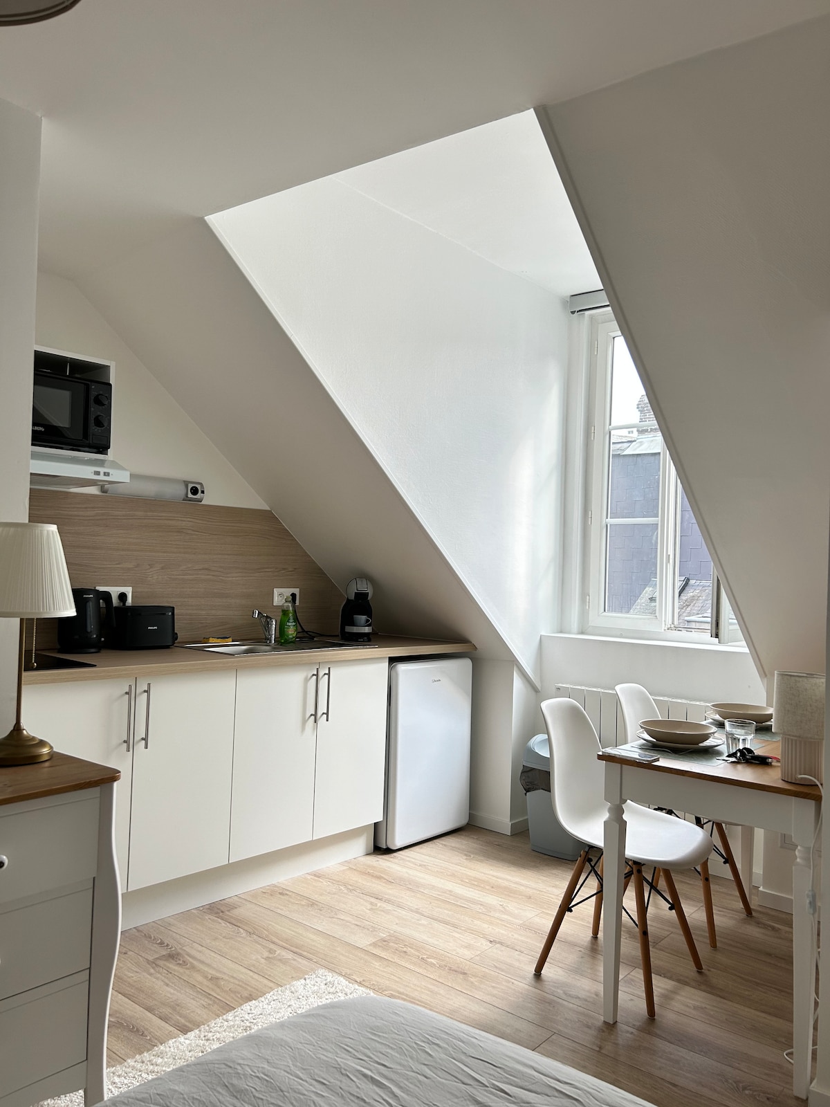 No cleaning fees 🧹! Welcome to this charming, newly renovated, ground-floor studio apartment overlooking a courtyard. Quiet and tastefully decorated, it's ideally located between the train station and Rouen city center. A large private terrace allows you to enjoy your meals outdoors. Equipped with all the necessary comforts, it can accommodate two guests. This accommodation is rated 1 star ⭐️ by the certified organization ADTER.