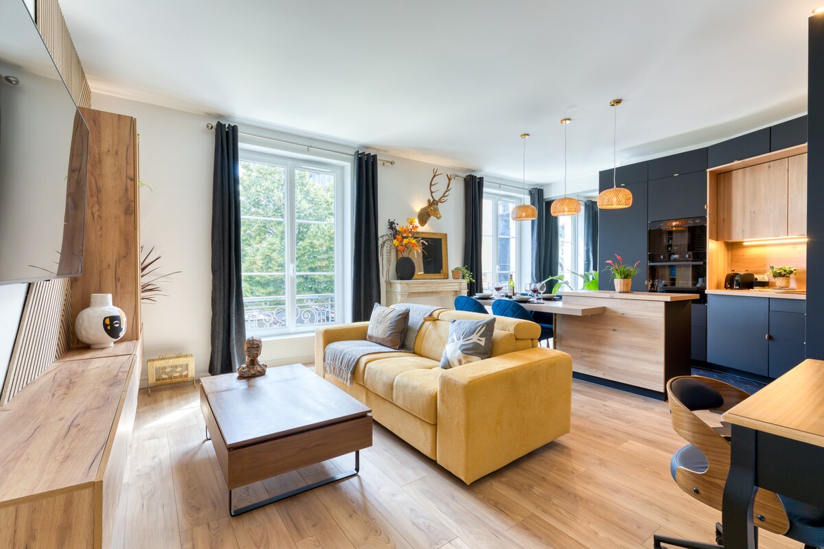 Kleidos BNB is honoured to present to you Olympe! This superb apartment, perfect for a professional stay, with family, couple or friends, is located in a quiet street just a few steps from the famous Place du Vieux Marché and the emblematic Rue du Gros-Horloge, in the historic center of Rouen, and 600 meters from the train station. Come and enjoy an exceptional stay in the heart of the city of a hundred steeples! test