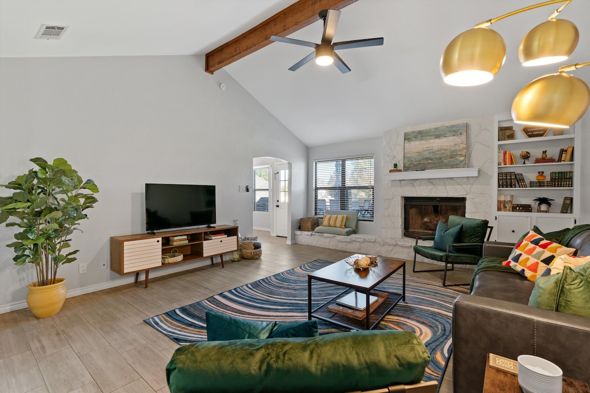 Modern Comfort in a Prime Location! Stay just 5 minutes from Downtown Round Rock’s bars and restaurants, 10 minutes from Kalahari Resorts and Dell Diamond, 20 minutes to Downtown Austin, and 30 minutes to Circuit of the Americas and Austin-Bergstrom Airport. Unwind on the spacious back patio with a grill and fire pit, perfect for cozy evenings. Inside, enjoy modern amenities, plush furnishings, and a fully equipped kitchen—the perfect getaway for adventure or relaxation!