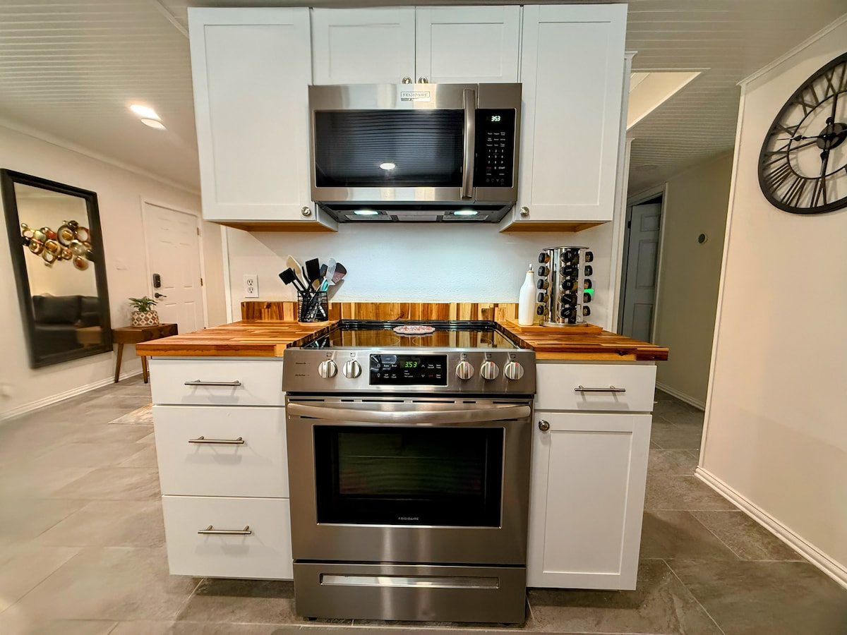 Fully remodeled, centrally located 1BR with a private alleyway entrance and parking. Loft bedroom accessed via a ladder-like stairway gives the space an open feel. The comfortable sectional offers a plush place to chill while watching TV or a place for a third guest to sleep. The remote work setup includes a high-end monitor and wireless peripherals accessible by a USB-C hub. Pets are welcome. New washer and dryer. Walkable neighborhood convenience only 10 mins from UT or 15 to downtown.