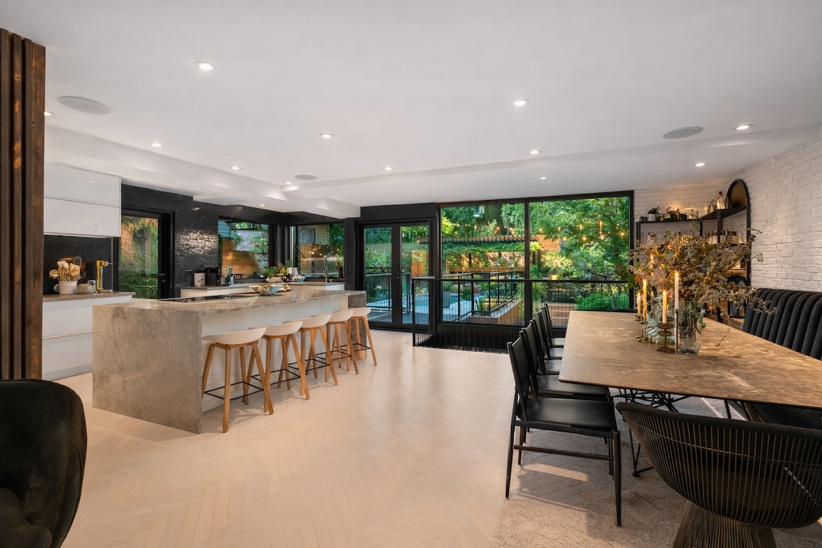 Immerse yourself in the heart of Montreal at our stylish downtown house, located just steps away from iconic landmarks, dining hotspots, and cultural treasures. Enjoy a fully equipped kitchen for home-cooked meals and a spacious exterior patio with a BBQ, perfect for relaxing. The house features a big living room, two bedrooms: one with a comfortable king-sized bed and the other with a queen-sized bed. High-speed internet (1.5 Gbps) and a dedicated office space make it ideal for remote working.