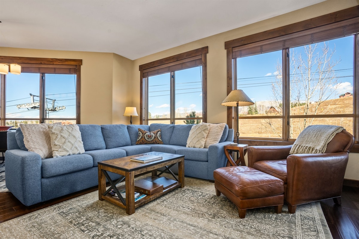 更新后的滑雪入口/步行出口2卧室2卫生间公寓,可欣赏美景!