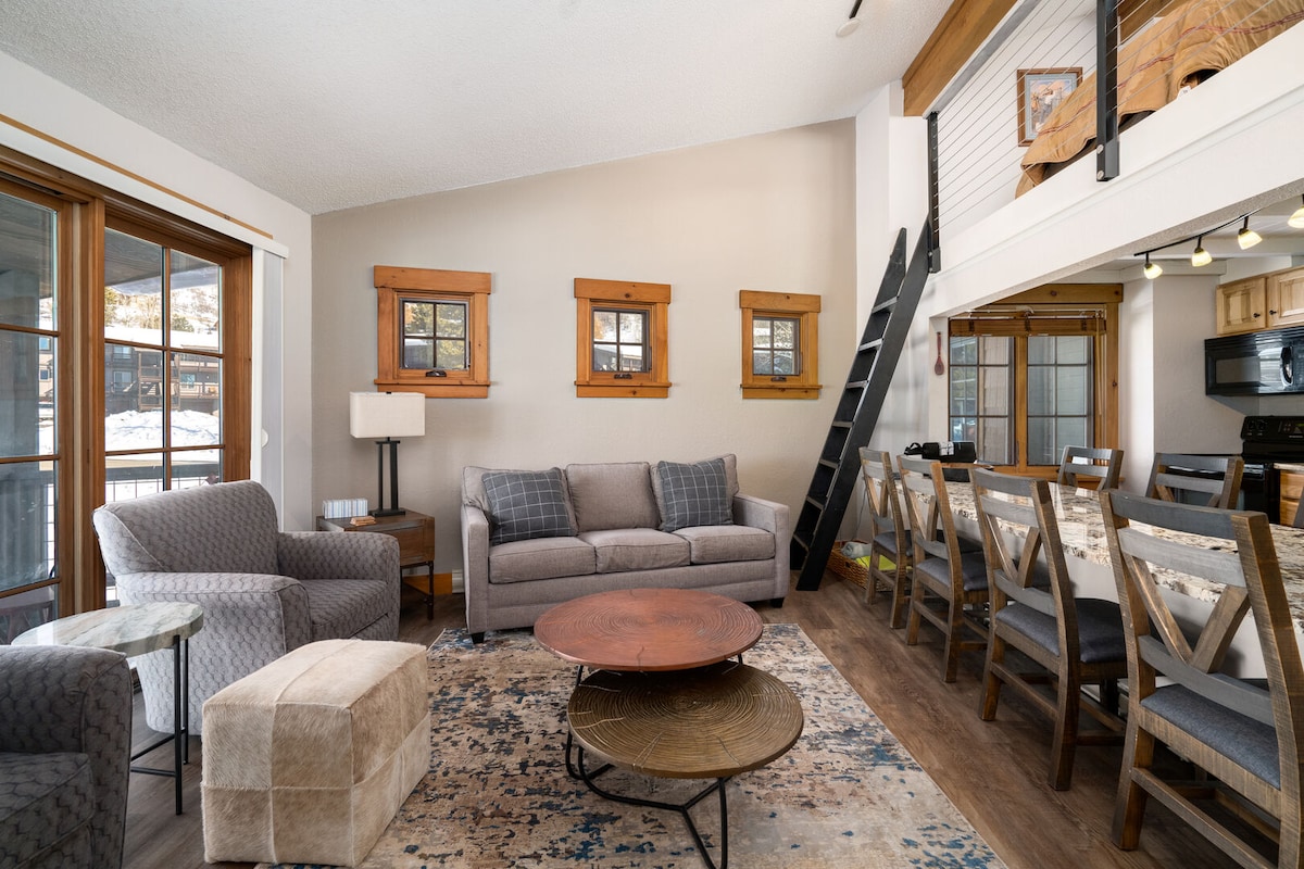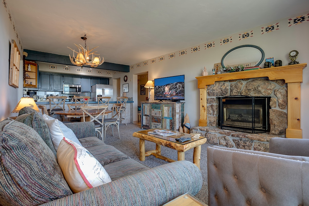 Prime location ski in/ski out. 4 min walk to expanded Base Area with new restaurants/stores. Private balcony: views of mountain & amazing sunsets. -New King Beds in both bedrooms -New Gas Fireplace in Living Room -Right on the mountain: Fast/easy access to trails -Ski Locker -Easy to enter condo: no stairs/25 yard walk from entrance -Hot tub & Sauna in complex -TVs in Master & Living Room -Updated open layout: stainless steel appliances, butcher block counter -3-4 Min walk to restaurants