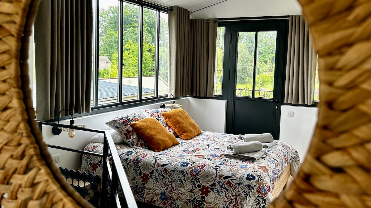 Charmant four à pain ancien en colombages, situé en bord de ruisseau il se compose de : - Salon avec un poêle à bois, - Cuisine, - A l’étage : -salle de douche/WC accessible par une échelle de meunier (voir photos), -chambre avec un lit 160x200 avec vue sur le ruisseau, accessible par une échelle de meunier (voir photos), Chambre et salle de bain ne communiquent pas. Salon de jardin, BBQ, parking privé, bois de chauffage inclus Note autre gite, la Maison de pierres, est à 100m
