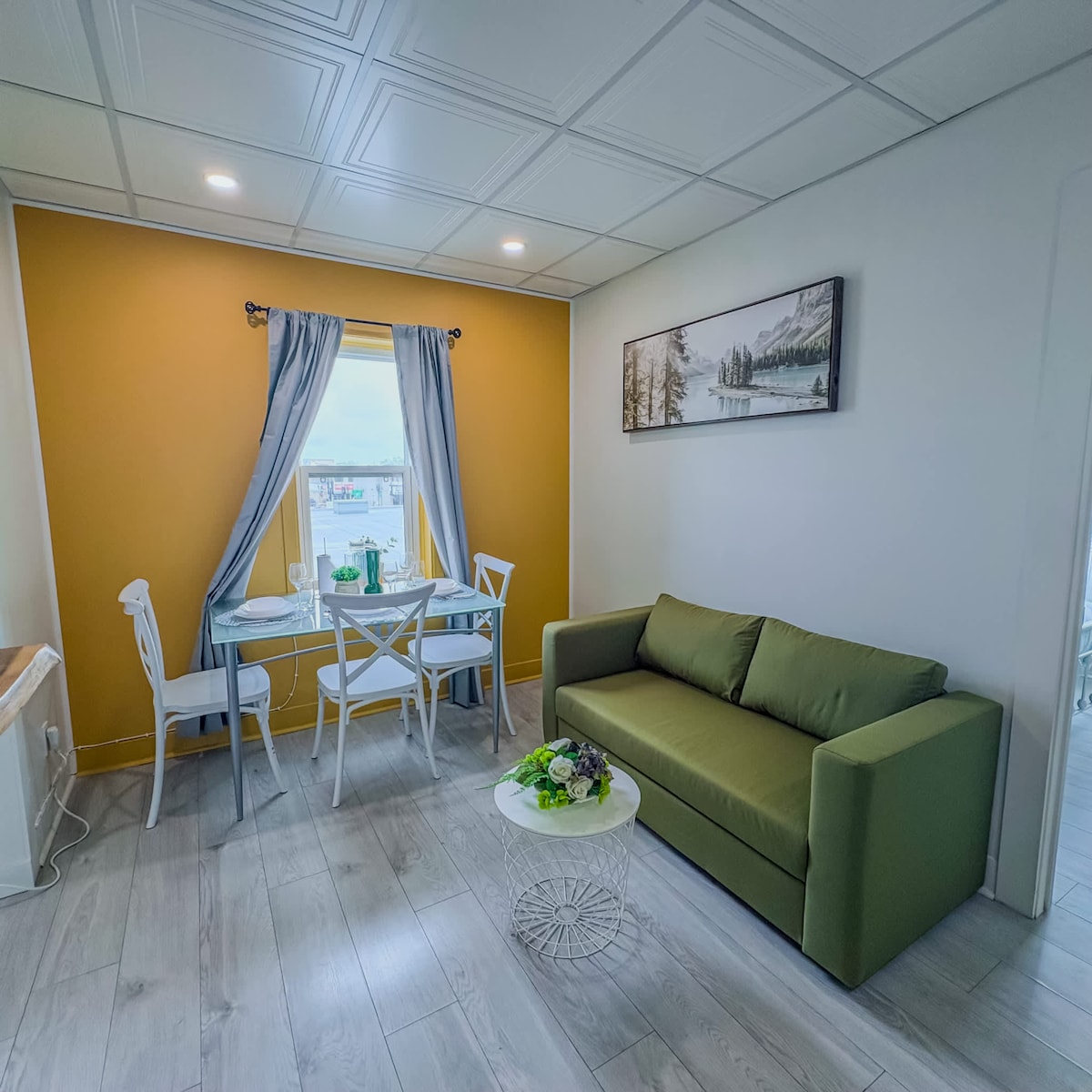 Welcome to Sweet Escape, a loft fully air-conditioned in summer and heated for winter, decorated with care in a warm, modern atmosphere. Its shades of green, yellow, white and gray create a lively, relaxing atmosphere, perfect for a solo or duo stay. CITQ REGISTRATION NUMBER: 304625