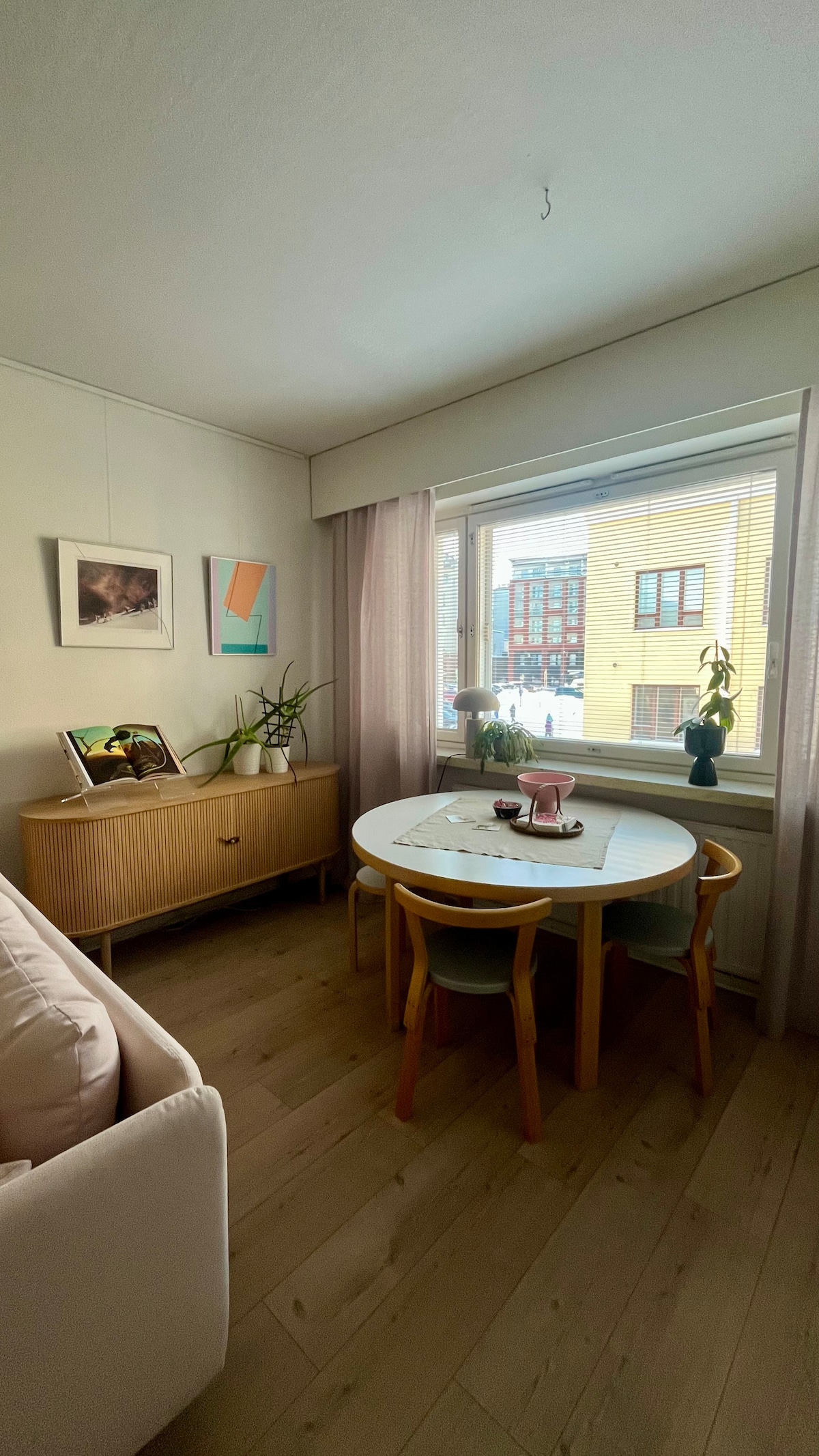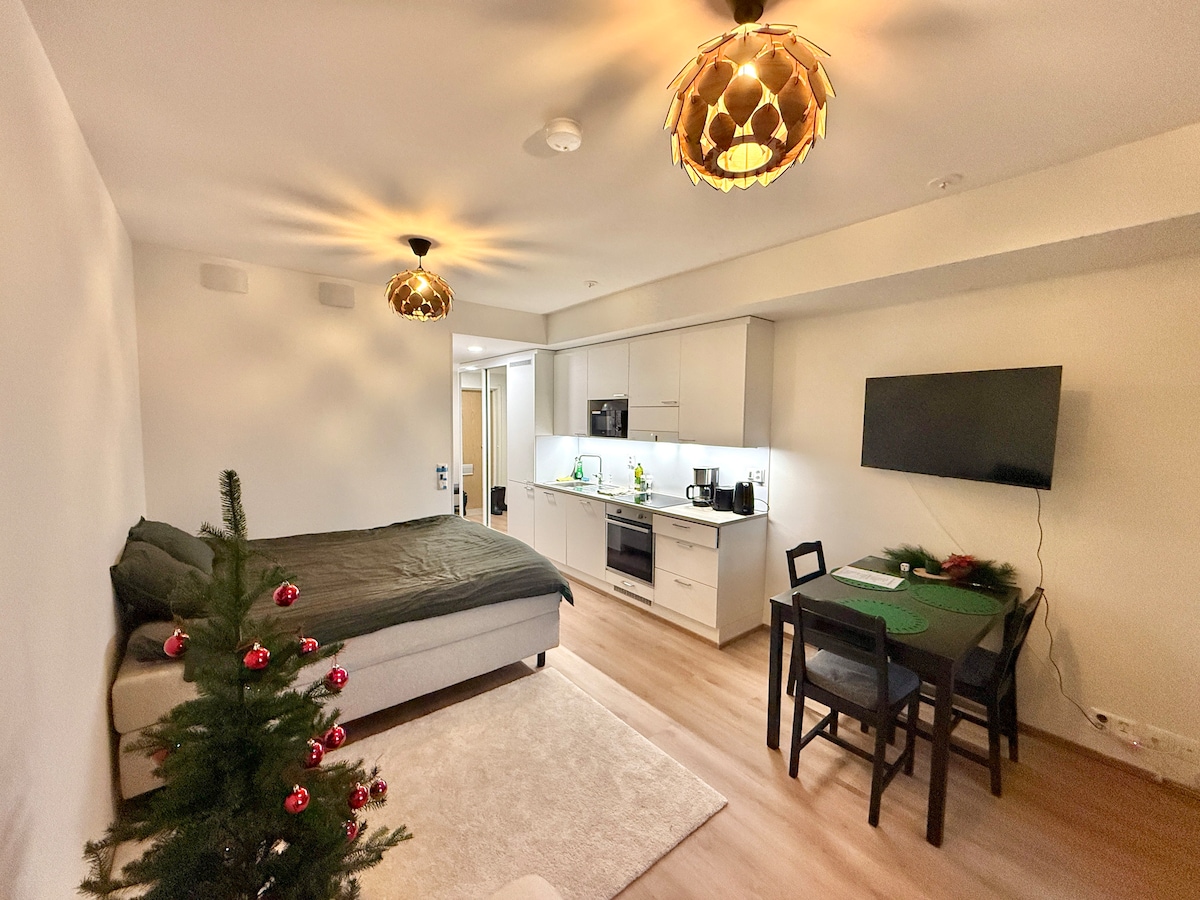Winter Dream Suite – Luxury and Relaxation Near the City Center This high-quality and spotless apartment accommodates up to four guests and features a private sauna and a cozy balcony. The location is perfect: a peaceful setting ensures restful nights, yet the city center with its services and attractions is just a short walk away. Scandinavian style 2nd floor apartment has a large living room, alcove with queen size bed, sauna and furnished balcony. Fully equipped kitchen.