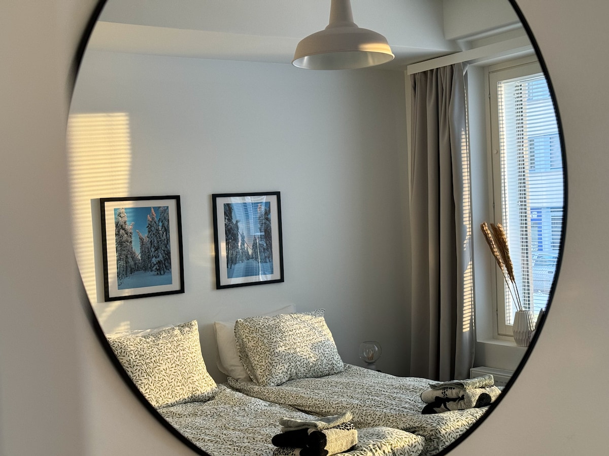 Nauti tyylikkäästä majoittumiskokemuksesta kaupungin keskustassa sijaitsevassa kohteessa. Skandinaavisesti kalustettu huoneisto sijaitsee aivan juna- ja linja-autoasemien läheisyydessä. Mukavasti majoittuu 2, mutta on petipaikka 3 aikuiselle. Huoneistossa on ilmainen wifi. Ilmainen kadunvarsipysäköinti Etäisyyksiä; - 5 min kävely juna-asema - 5 min kävely joulupukin pajakylän bussipysäkki - 2 min kävely kauppa/pizzeria - 10 min kävely ydinkeskusta - 10 min autolla joulupukin pajakylä