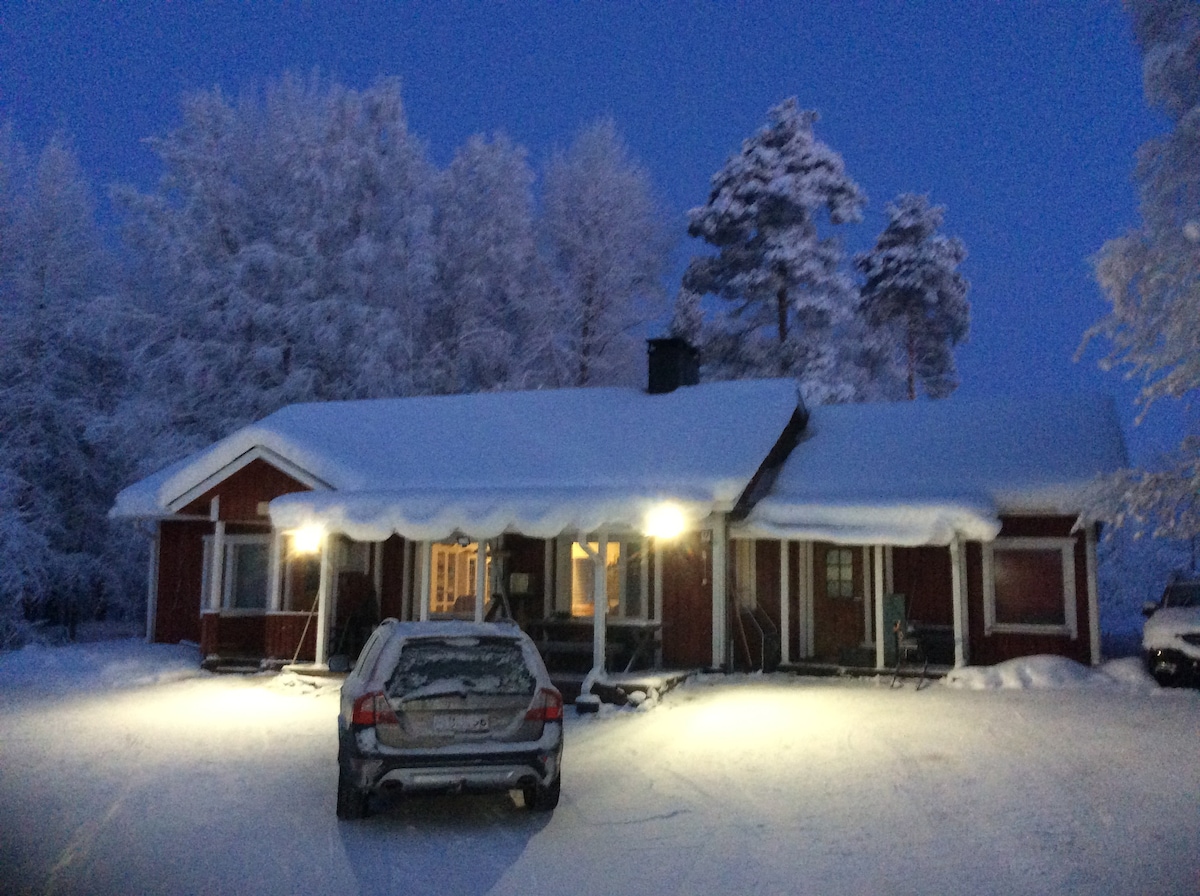 Our wooden cottage is located in idyllic residential neighbourhood. It is 2,5 km from downtown! Easy to access! It is a charming high-quality cabin for 3. Kitchen and large bathroom with sauna. Relaxing and peaceful residential. Laplands university and supermarket is within a 500 meter. Two kicking sledges free for use. The longest river Kemijoki is only 50 m away. Our family lives on the other side of the garden so you can enjoy genuine Finnish lifestyle here. We wish you warmly welcome!