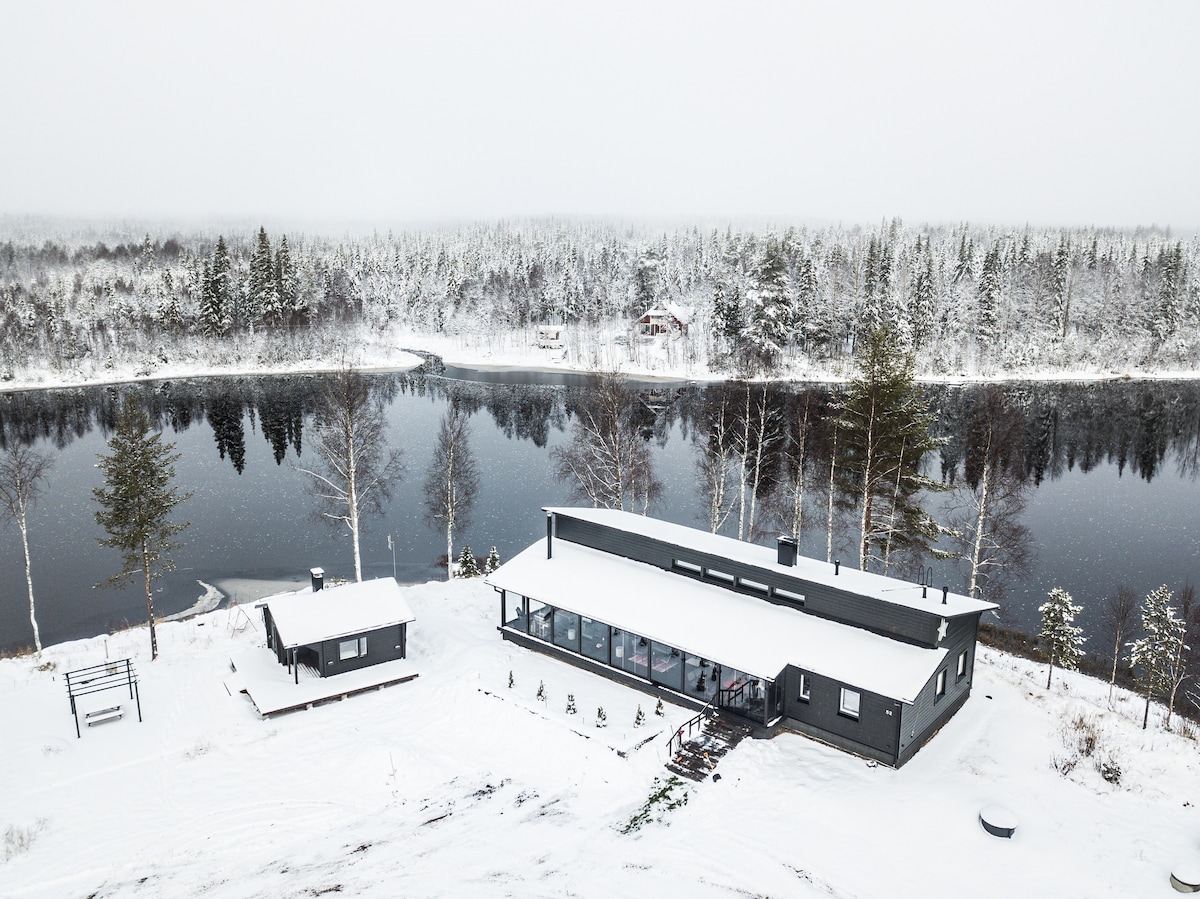 A unique nordic beach house only 12 min drive from the Santa Claus Village. Here at vacation home you may see Northern lights from August to end of April.. Accommodation with a private suite for 6 adults, with small children even for 8. Modern black house stands on a hill only 25 m from the lake shore, over looking to the Northern open horizon to summer midnight sun. Experiences for example Sauna, ice swim, ice fishing, snowmobiling or Santa on site (plus huskies, reindeer) at additional cost.