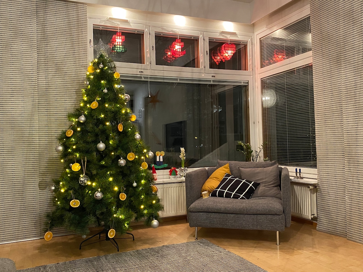 Juuri remontoitu ja tyylikkäästi sisustettu yhden makuuhuoneen rivitaloasunto rauhallisella alueella. Täydellinen valinta perheille tai pariskunnille tai kaveriporukassa matkustaville. Asunnossa on tyylikäs sisustus, hyvin varusteltu keittiö ja perinteinen suomalainen sauna. Huoneistossa majoittuu 1-5henkilöä. Sijainti on ihanteellinen: rauhallinen naapurusto vain 5–10 min ajomatkan päässä keskustan palveluista ja elämyksistä.