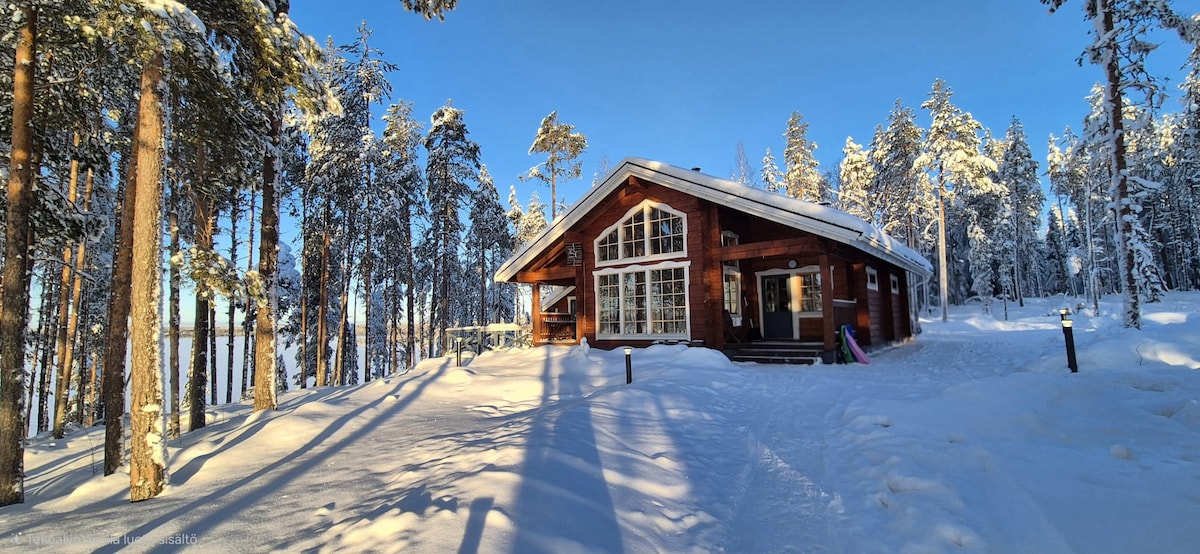 Your peace of Lapland! You are welcome to experience an authentic Lapland holiday! Here you will have an ecological Lapland handcrafted luxury wooden villa. The villa is located on a private peninsula. From the windows you can see an unique panoramic view of the lake. The distance to the beach is only 25 meters. You are in complete peace in the middle of nature.Sauna, jacuzzi, private barbecue hut and all the amenities!! It takes only 55 min. to Rovaniemi City (Santa's Village) by car.