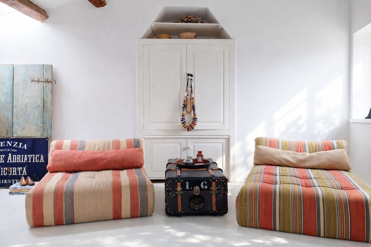 From 1900, Casa Bella is right on the Rovinj seafront, with unique and open view of the Adriatic sea. Enjoy sunny and airy space of 80 sqm, with high ceilings, on top location in the historical Rovinj. Casa Bella is visible on every Rovinj postcard, just steps away from the main square, green market, best Rovinj restaurants and tiny morning caffes with perfect creamy Italian cappucinos. The nearest beach for an early morning swim is just down the street, as are the boats for idylic islands.