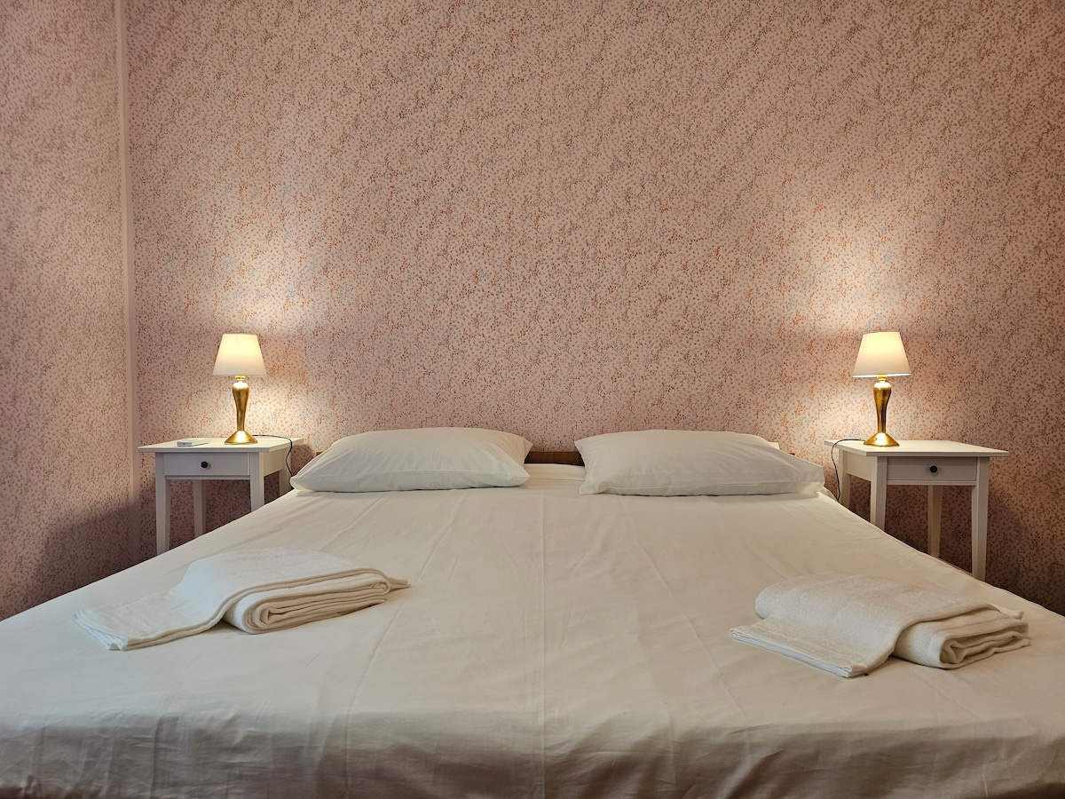 The apartment is 54m2, with a fully equipped kitchen and living room in the same big space, a separate bedroom, bathroom and balcony. It is equipped with air-conditioner, satellite TV, WiFi, radio with MP3 player. We are pet friendly and accept one pet free of charge, but will charge a fee of 5€ per day for each additional pet over the first.