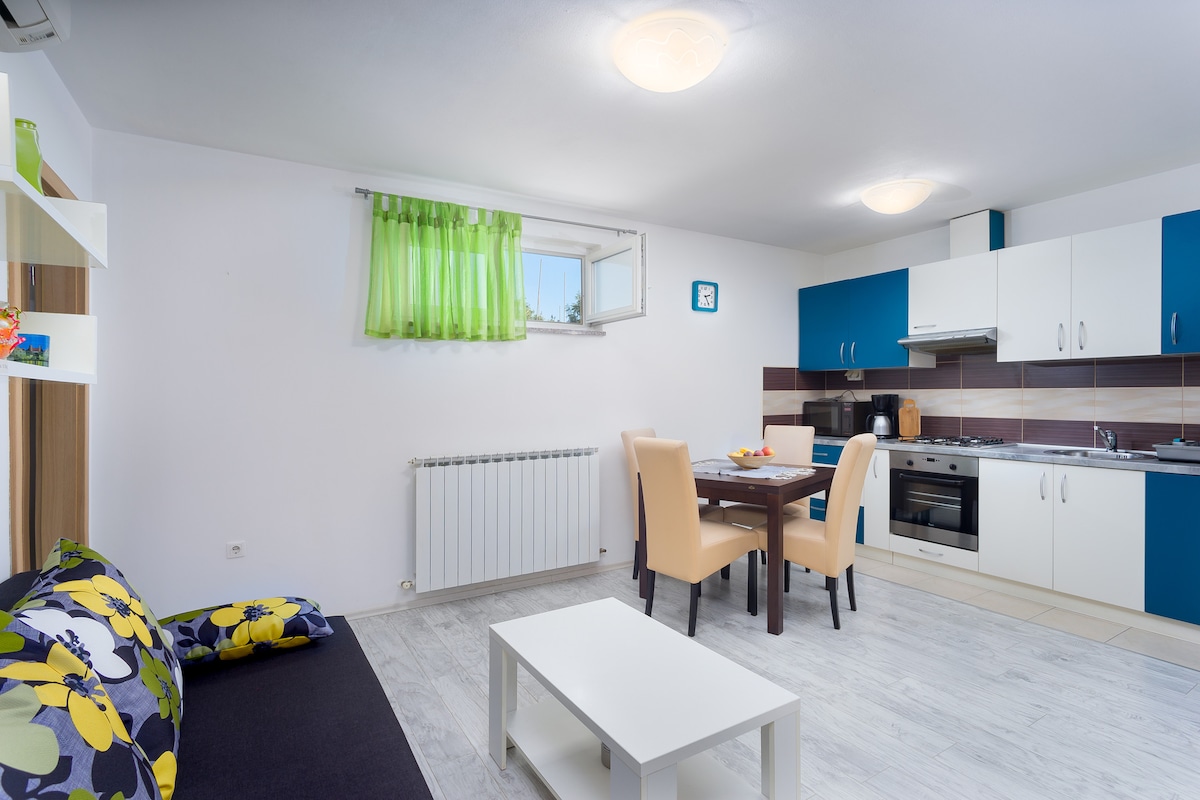 The Apartment is located just 10 min walk from the old city. The Apartment has one double bedroom and the Living room together with the kitchen,TV with a satellite channels,air condition and a terrace with barbecue,free Wi-Fi and parking space.