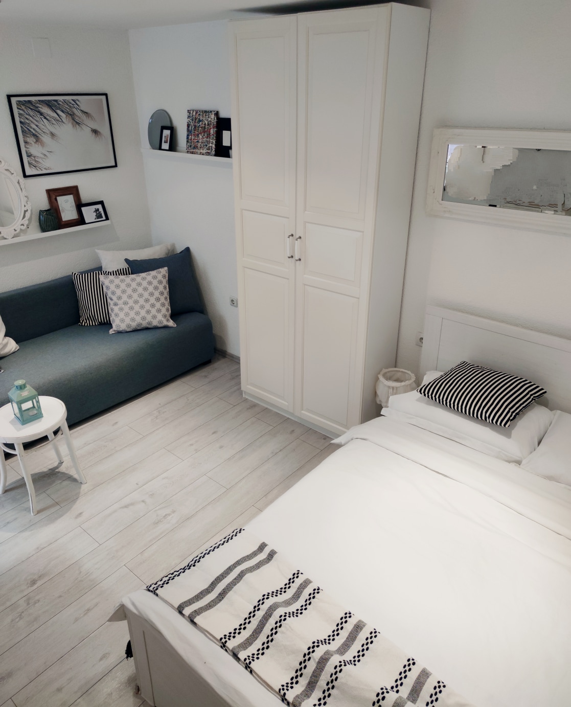 Our studio apartment 2+1 is located on the 2nd floor of our family house and provides a free parking. It consists of a big bright room with a king size bed,an additional bed, a full equipped kitchen with dinning-space, a private bathroom and a beautiful balcony which overlooks the roofs of Rovinj and has an amazing sea-view. The apartment has free WiFi, TV and AC. Our house is in a safe neighbourhood, the city centre is a 5min walk and you reach the nearest beach on foot in 10min or 3min by car.