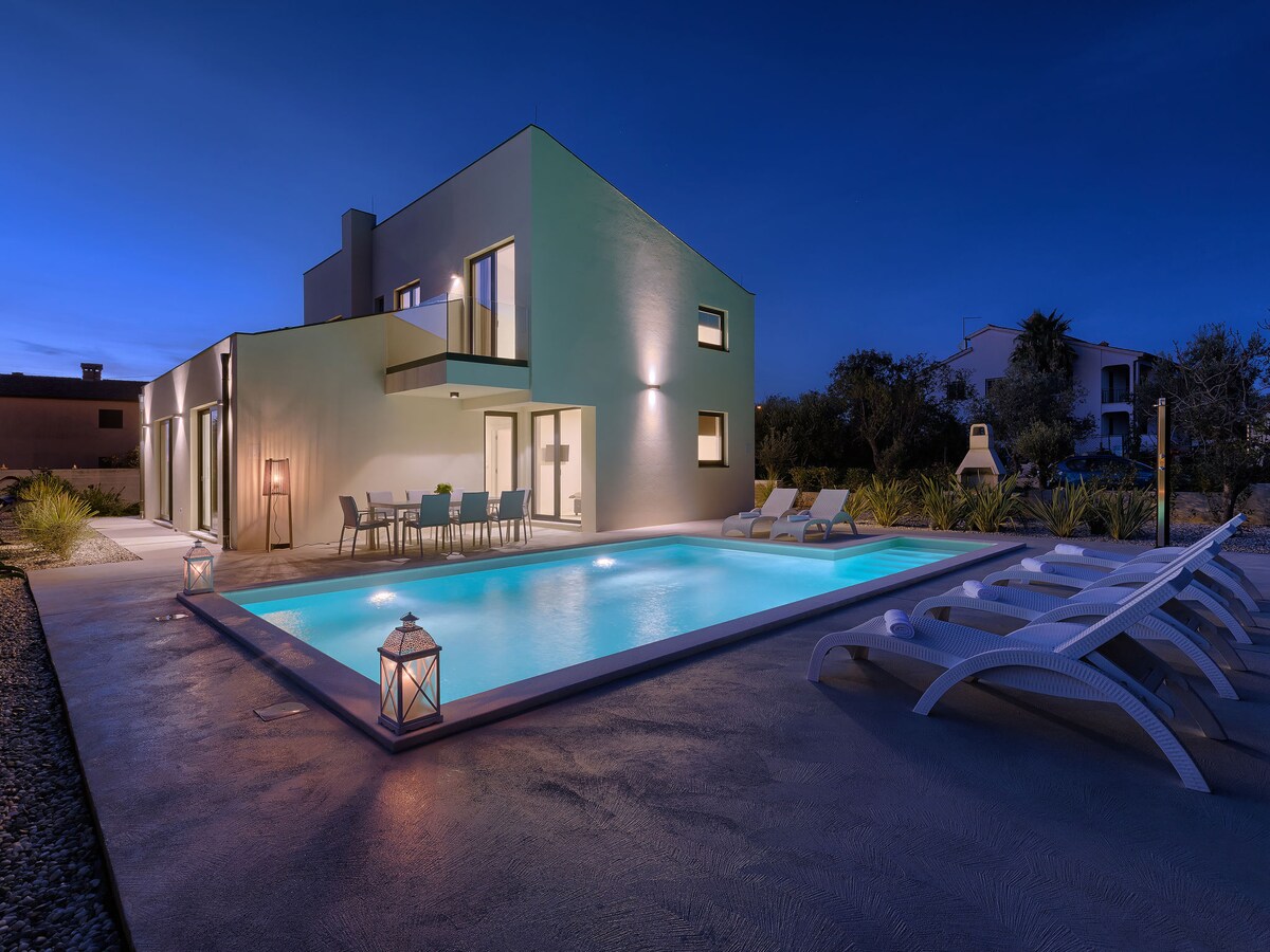 Discover the epitome of privacy, tranquility and relaxation in our new designer Villa Bella Nicole, nestled in the serene village of Bale, 10 km from Rovigno – Istria. Enjoy a private 10-meter heated pool. Nearby are grocery stores, restaurants, and a pharmacy. Pristine beaches are just 9 km away with free Camp Mon Perin guest cards and free parking 50 m from the beach. Free beach entrance.
