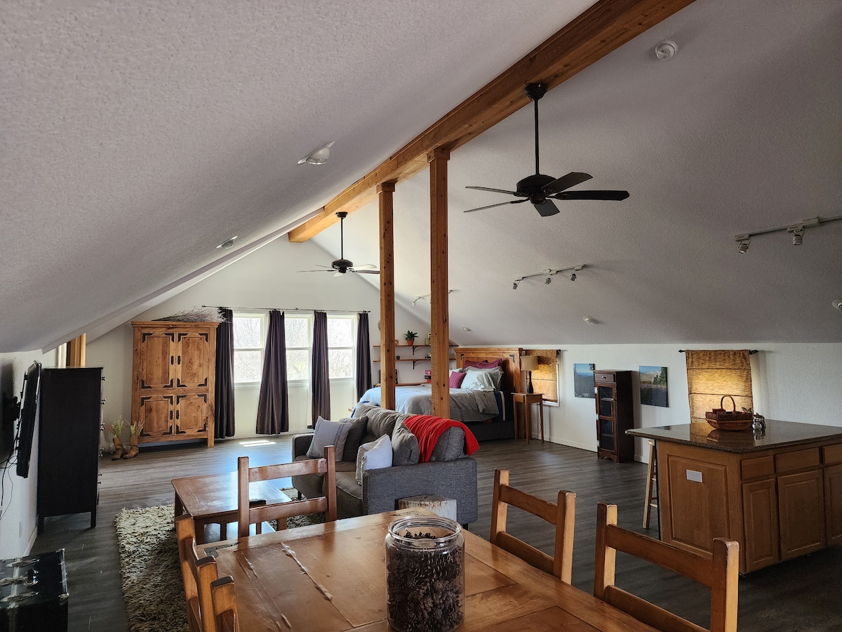 Experience a luxurious and fully restored 1890s barn on the first homestead property in the heart of downtown Castle Rock. High-end finishes throughout ensure your complete comfort and relaxation. Coffee, antiques, restaurants, shopping, and Festival Park are only a two minute walk from your front door. Enjoy a taste of simple, country living as you walk past our garden, chickens, and wild rabbits. The large, 1/2 acre property is charming, spacious, and the perfect backdrop for your stay.