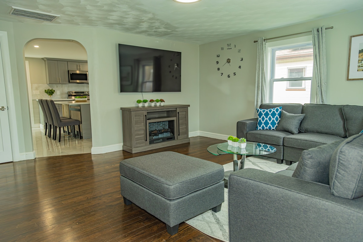Perfect for families and groups, this clean, newly renovated 3-level home has 1 King and 2 full size bedrooms and sofa sleeper in living room 2.5 bathrooms (including a half bath on the main floor), and thoughtful touches like snacks, coffee, wine, chargers, travel crib, and fast Wi-Fi. Located in an authentic Boston neighborhood ~20–30 min from downtown by car or transit. Expect lively local character, easy access to public transport, and normal city sounds.