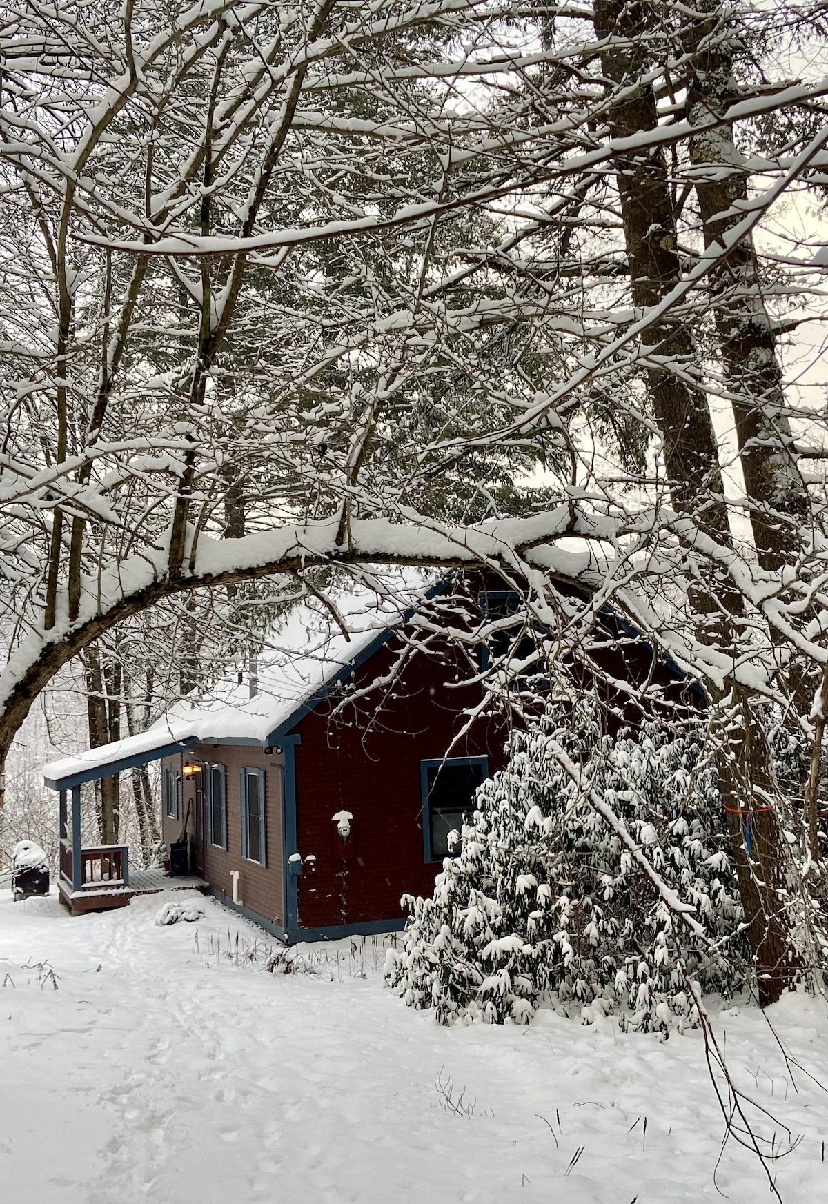 In a secluded, hand-crafted off the grid cabin, come and enjoy the elements with us at Drift Farmstead. A 3-minute walk leads you through gardens and pasture, to Ravenwood, a small, intimate cabin with everything you need. Be it an extended weekend tucked in seclusion, amongst the birds, river and trees, or find the comforts of a 37 acre small farm nestled in the mountains and settle in, working from afar. Top shelf skiing at Sugarbush is near, along with Vermont's finest grub and beer.