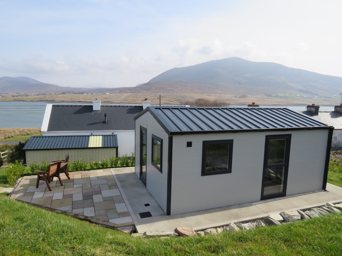 From every window, this unique and peaceful home has breathtaking sea and mountain views. It is private, peaceful and rejuvenating and is ideally located for exploring all that Achill has to offer. The home has two bedrooms, a bathroom, an open-plan kitchen & living area, and a deck. Get close to nature, look for as far as the eye can see, watch the tide come in and go out, hear the rain and the wind, unwind in the sunlight, and take in an uninterrupted view of the Milky Way on a clear night.