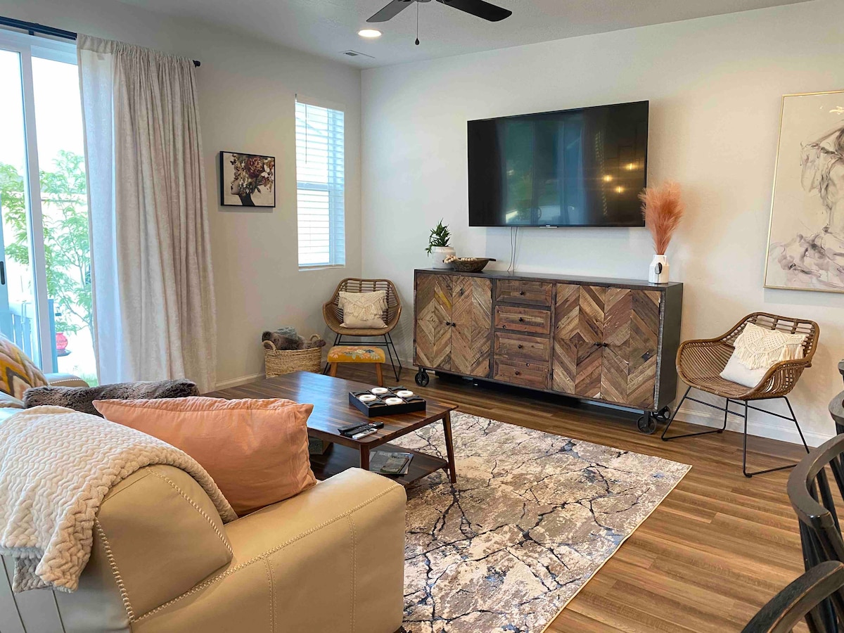 Enjoy a relaxing visit to Utah or a little staycation at this cozy home in peaceful Clearfield. Featuring 2 queen bedrooms and a bathroom with an open concept kitchen and living room. Relax by the firepit in the backyard or enjoy a meal on the back patio. Enjoy coffee at the coffee bar and relax by the fireplace. The area offers plenty of options for hiking and there are several ski areas between a 30-60 minute drive. There are plenty of restaurants and things to do in just a short drive!