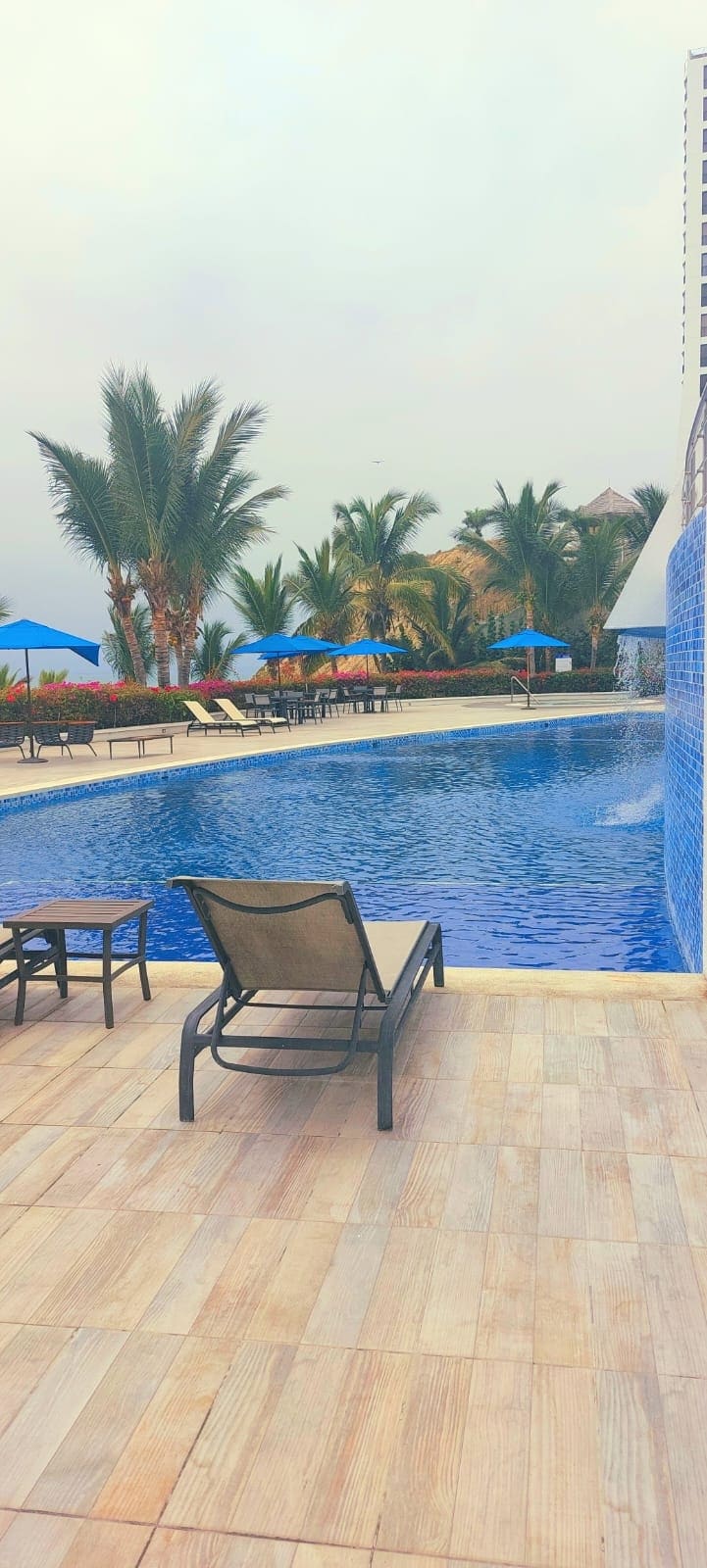 Diviértete con toda la familia en este alojamiento con estilo a 145 km de Guayaquil. Contamos con 2 dorm, 2 baños, En el 1 primer dorm Camas 2 1/2, en el 2do. Cama tipo 1 litera de 1.5 plaza y 1 cama individual 1.5 plaza, parqueo. 3 TV, 3 A/C, ascensor, agua caliente, lavadora y secadora, WIFI. Incluye acceso al Lobby, Gimnasio, área social con parrilla (bajo reserva), acceso a piscinas y jacuzzi. Además puedes visitar las lindas playas privadas que no tiene restricción de horarios.