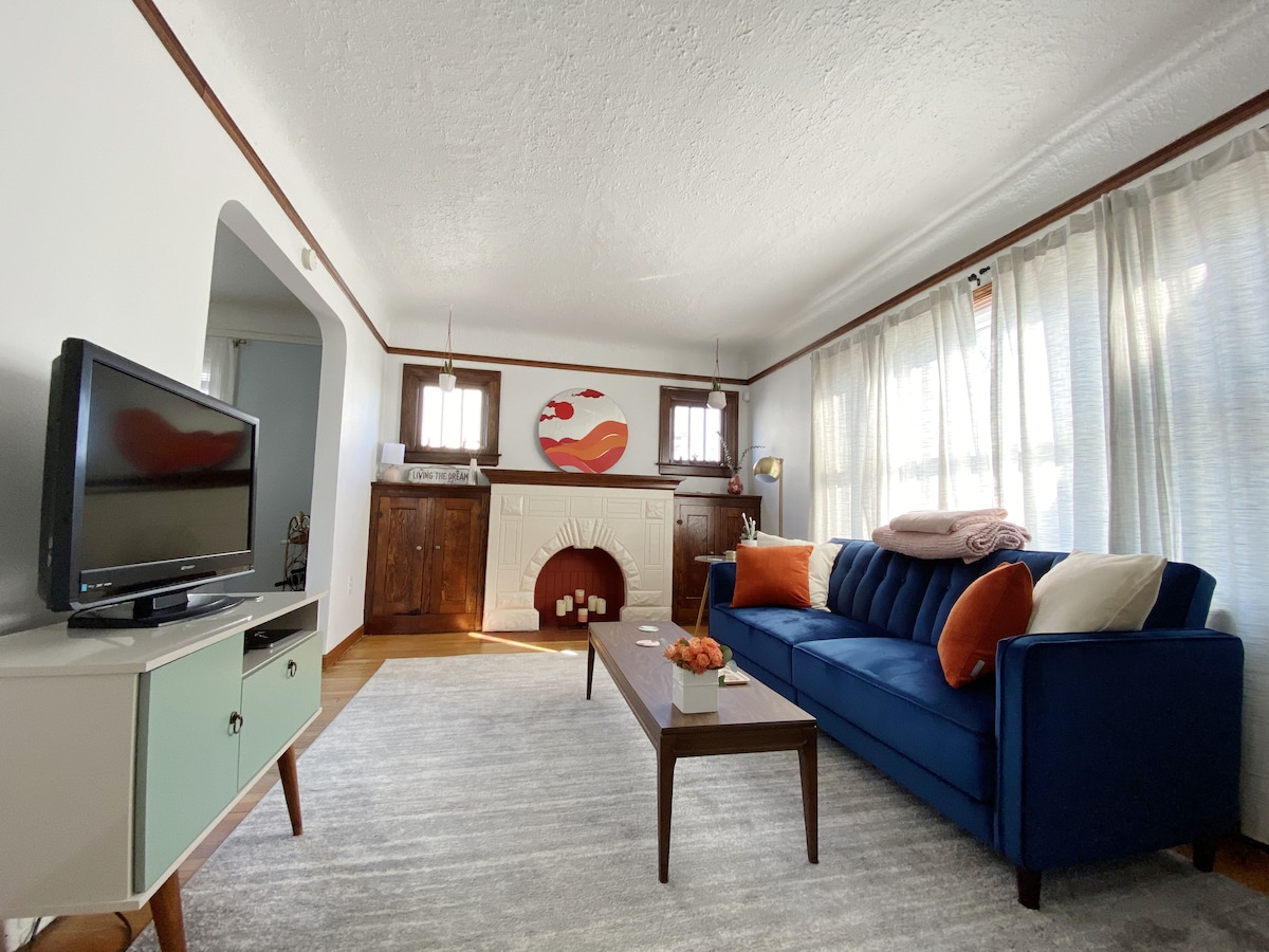 Professionally designed and updated entire 2 bedroom house! Unbeatable location on a quiet street. Relax in the garden, then a 2 minute walk to all the best restaurants and night life! Entire property! Included with your stay: ✅️New Xtra Deep Hot tub! ✅️entire 2 bedroom house ✅️Free wifi ✅️Self check in ✅️sleeper sofa in livingroom ✅️choose 2 twins on 1 king bed in 2nd bedroom ✅️Free off street parking ✅️Stainless steel kitchen, with oven and gas cooktop ✅️Dining table for 8