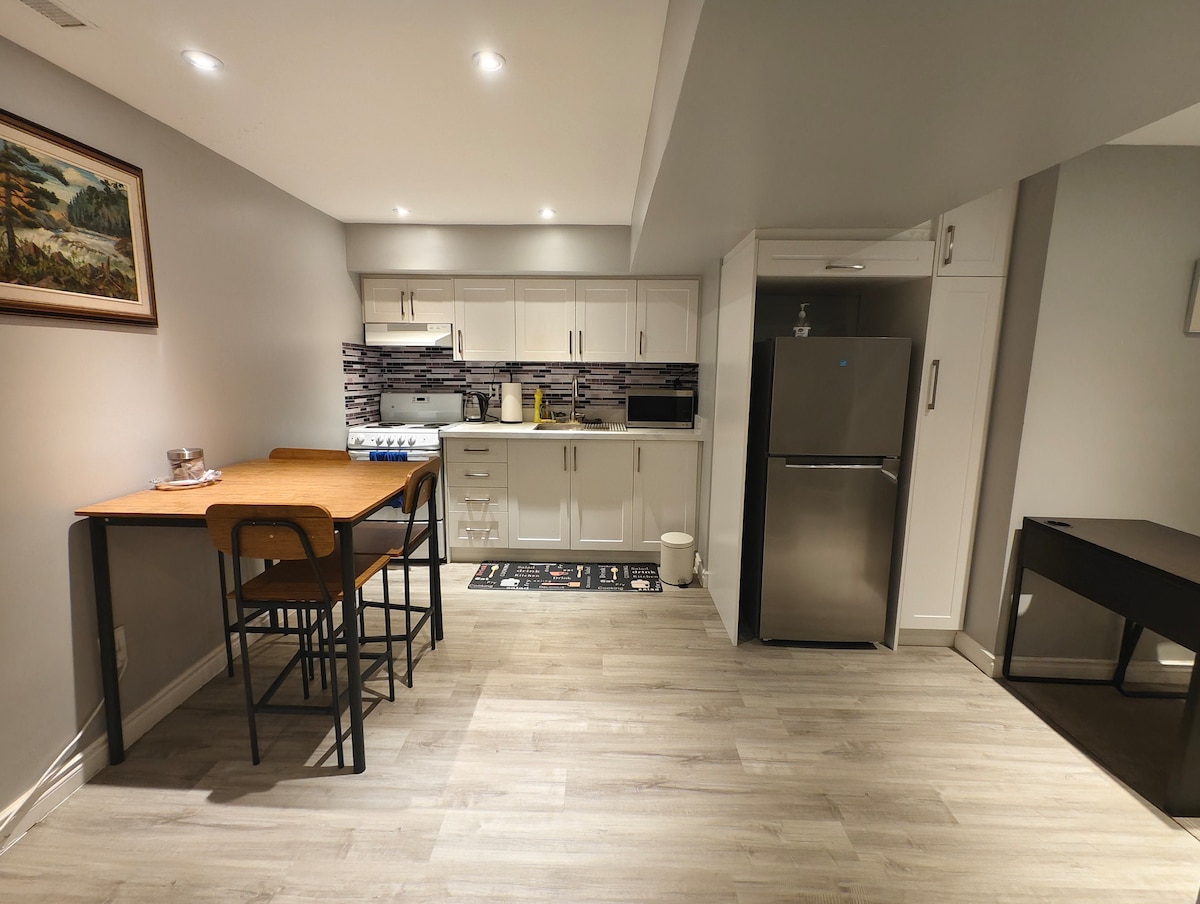 Cozy, comfortable, and spacious studio basement, tastefully designed for a memorable stay. It's a private basement unit with no shared space and a separate entrance. The guests will enjoy easy access to everything from this centrally located place - local plaza with the convenience store and a pizza store, right at the doorstep. (50m away). Local bus transit and a GO bus stop at a 1min walk. Othe major plaza with stores like Tim Horton, Metro (grocery store) and other eateries within 500m walk