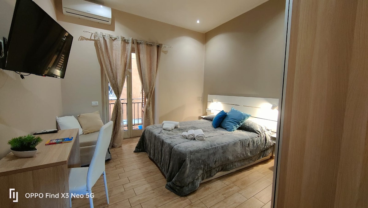 In pieno centro, in un elegante palazzo storico dei primi del 900. Appartamento luminoso, accogliente e dotato di ogni comfort. Un grande soggiorno open-space con divano, angolo studio, tavolo da pranzo e cucina a vista con penisola. 2 camere da letto e 2 bagni. L'appartamento ha 2 balconi, con un tavolino bar e due sedie. Ideale anche per soggiorni lunghi o per viaggi di lavoro. Nel quartiere locali, ristoranti e negozi. Raggiungibili a piedi tutte le principali attrazioni della città.