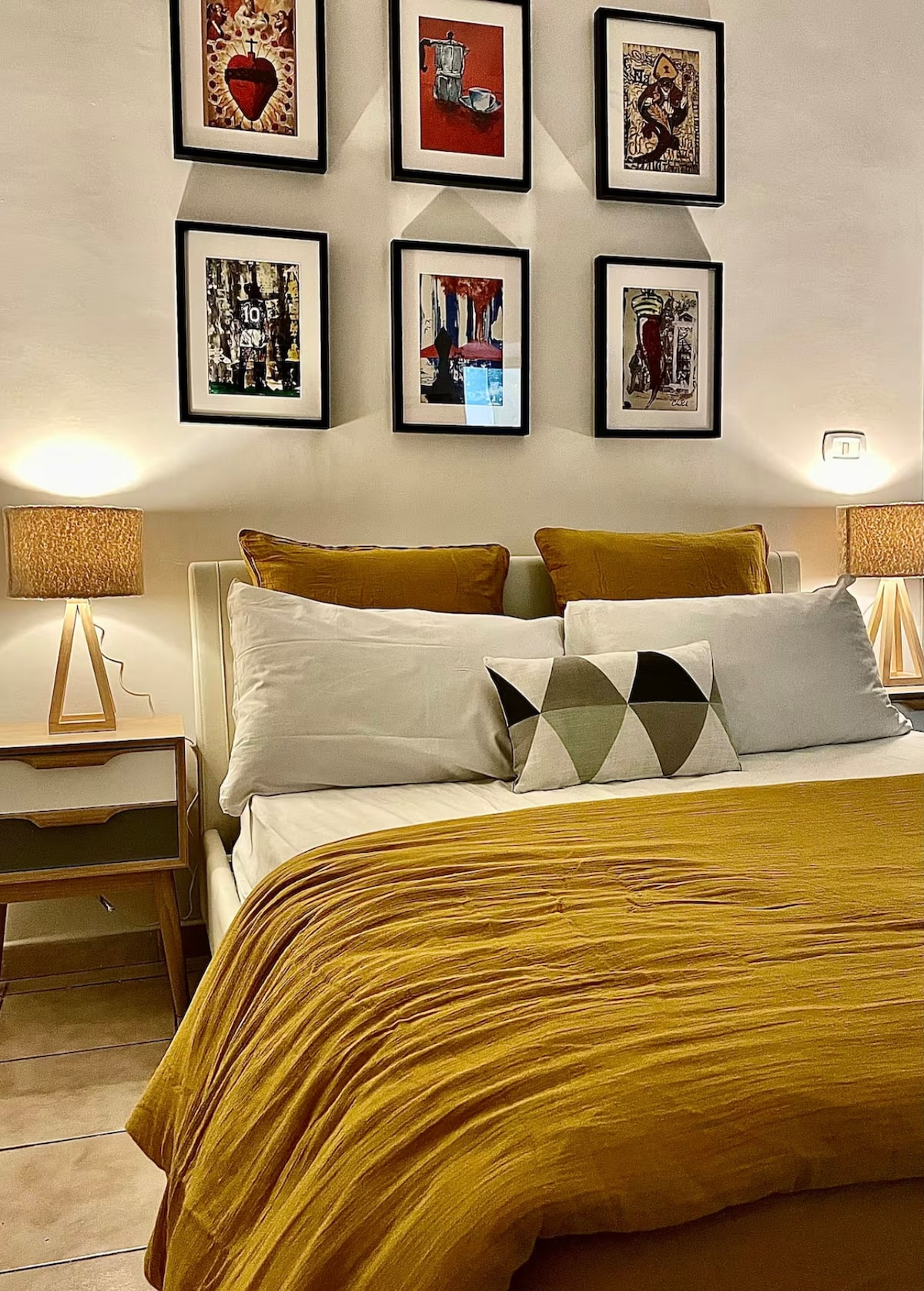 The apartment, just a 3-min walk from Amedeo Square (Metro L2, Funicular, Taxi Station), can host up to 5 guests and provides all the comforts for a relaxing stay in the heart of the elegant Chiaia district. The main spaces are: two cozy bedrooms with ensuite bathrooms, a spacious sitting room with a sofa bed, and a bright dining area with a handcrafted kitchenette. The interiors feature Liberty-style wood doors and frames from 1909, harmoniously balancing rustic elegance with modern amenities.
