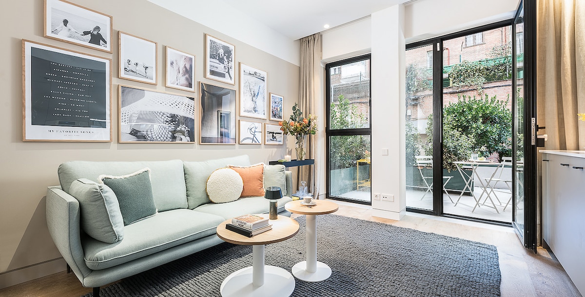 Designer studio located 3 minutes walk from Puerta del Sol, and 2 minutes from Plaza de Santa Ana. The space has a king size double bed, a convertible sofa bed with chaise longue, a fully equipped kitchen and a private bathroom in suite. The studio is equipped with a TV with access to Amazon Prime Video, TV mode and the possibility of wireless or HDMI connection.
